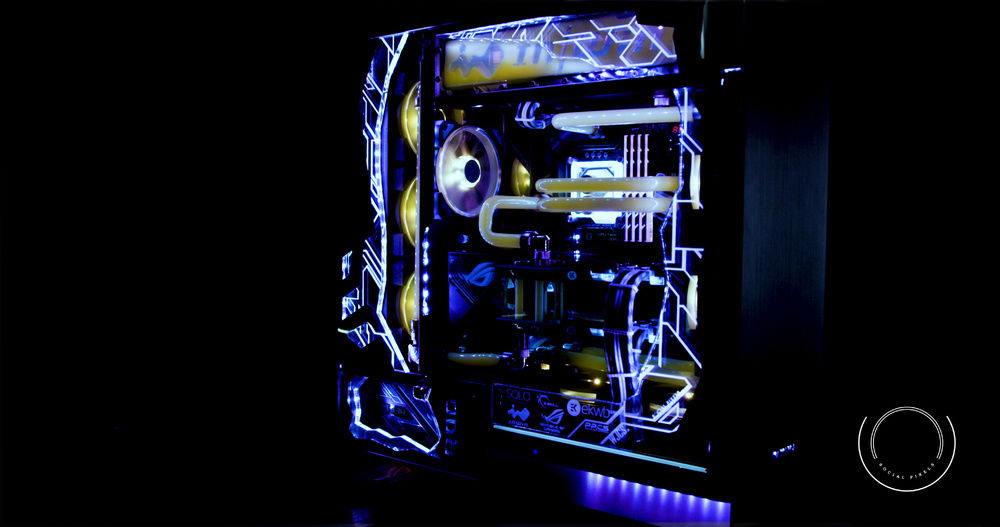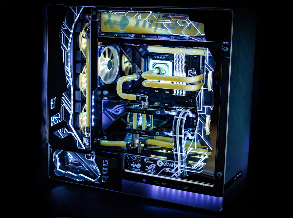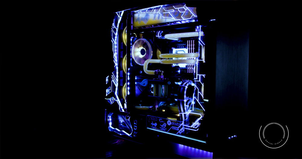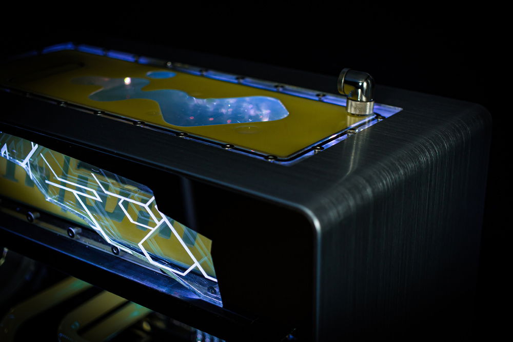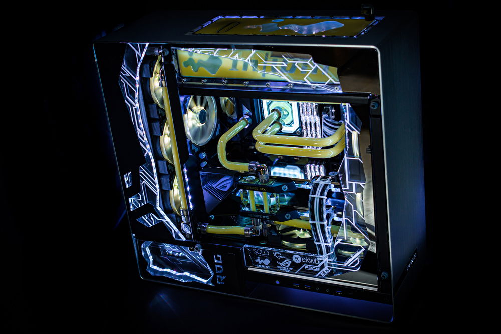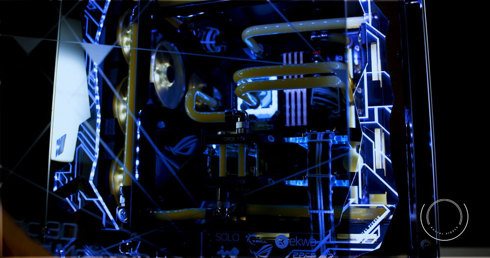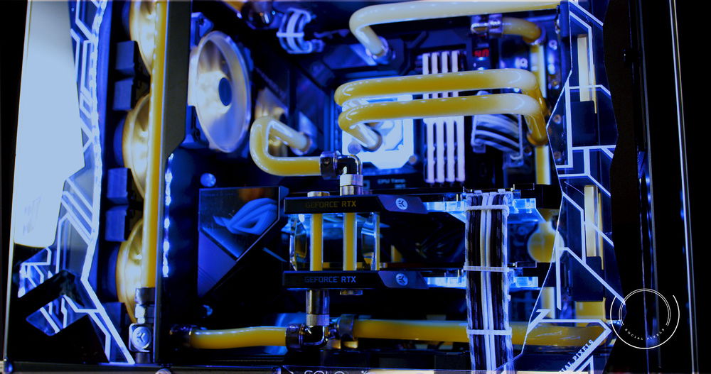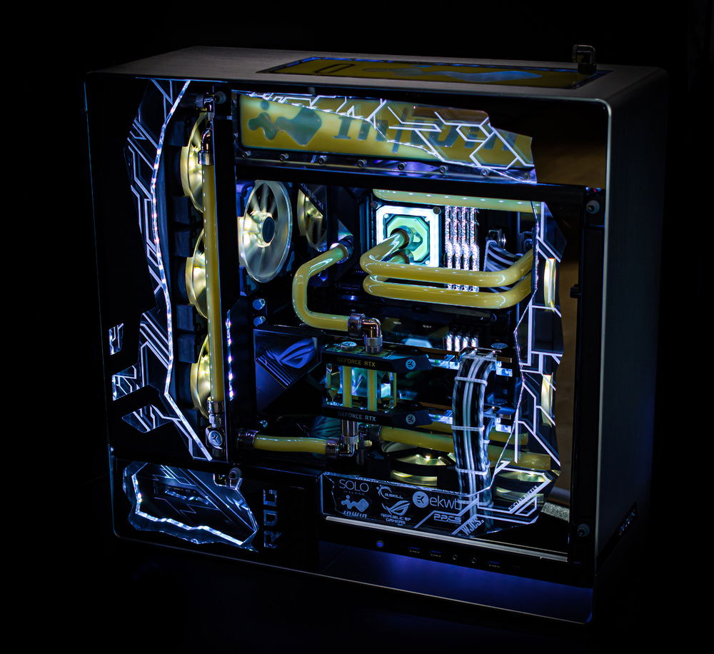 features a lot of custom parts, designed and manufactured by myself and my brother. we got a small company called Modbrothers, that makes custom water cooling gear ;)