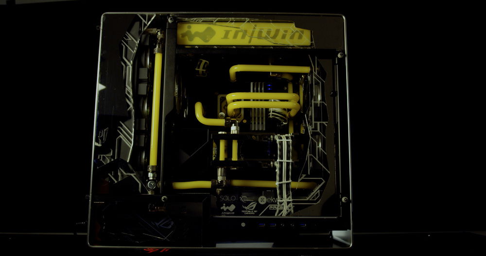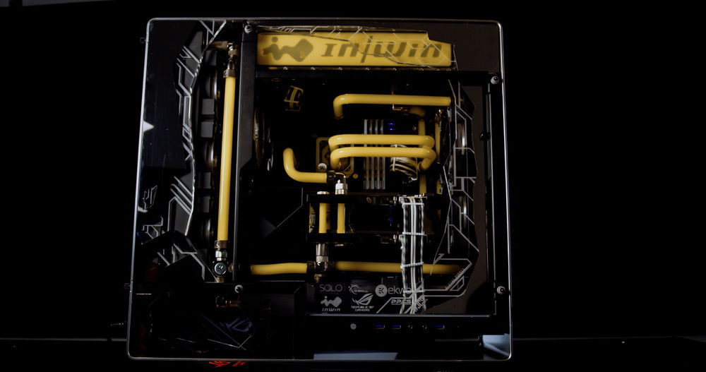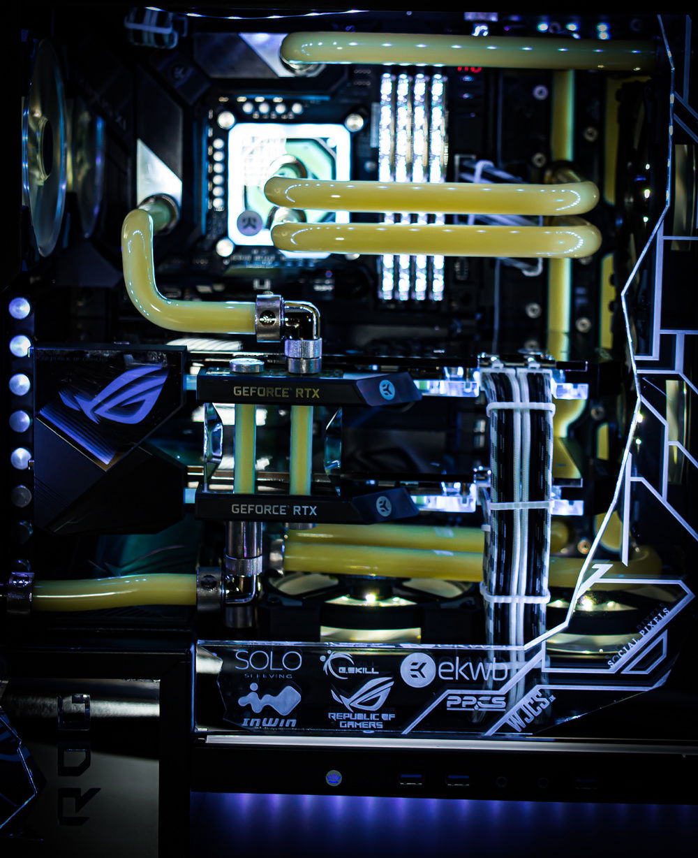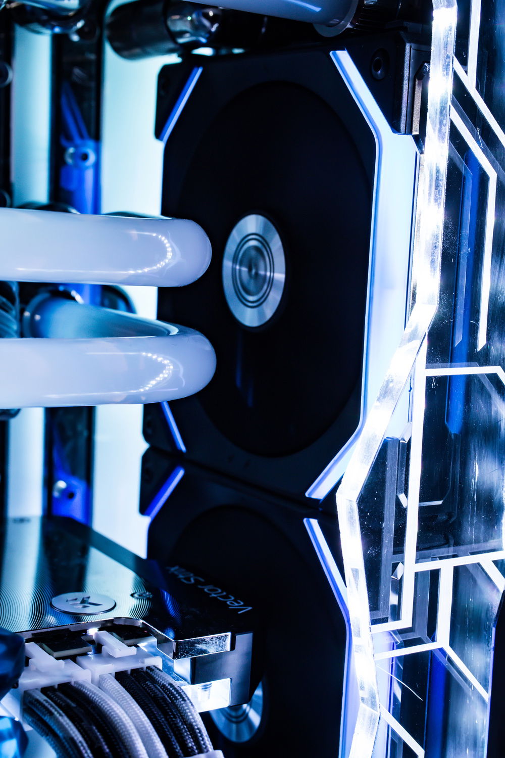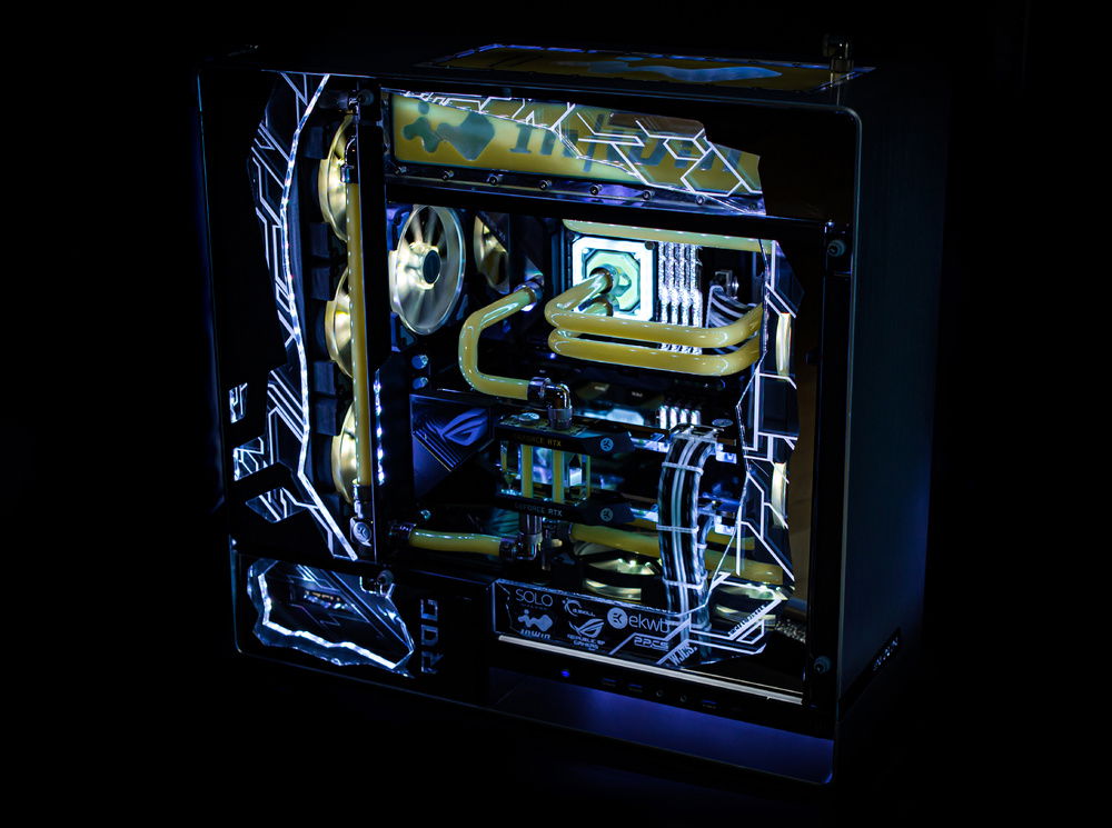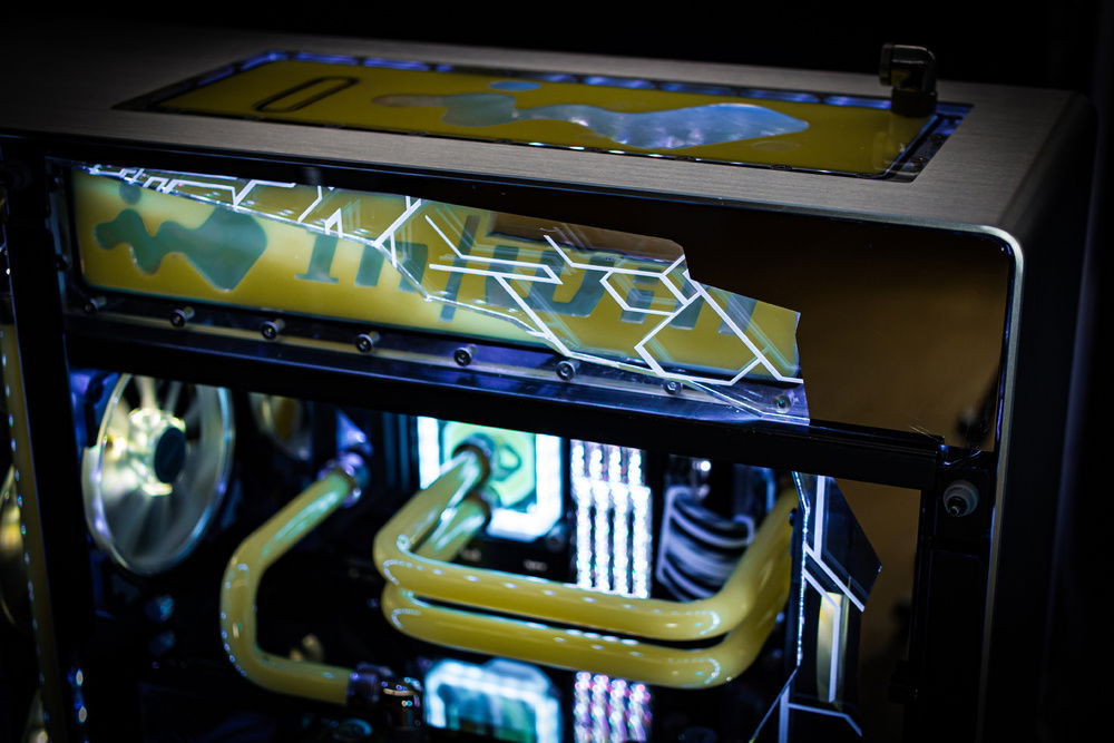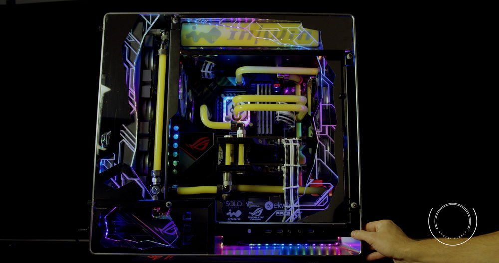 features a lot of custom parts, designed and manufactured by myself and my brother. we got a small company called Modbrothers, that makes custom water cooling gear ;)