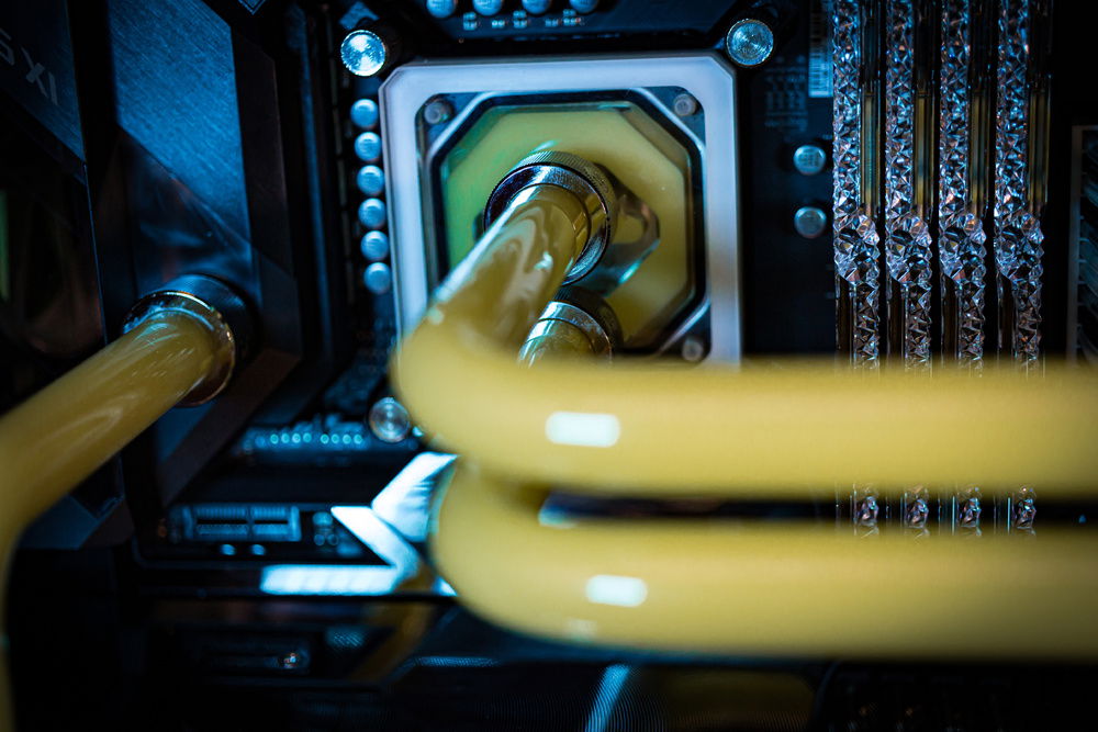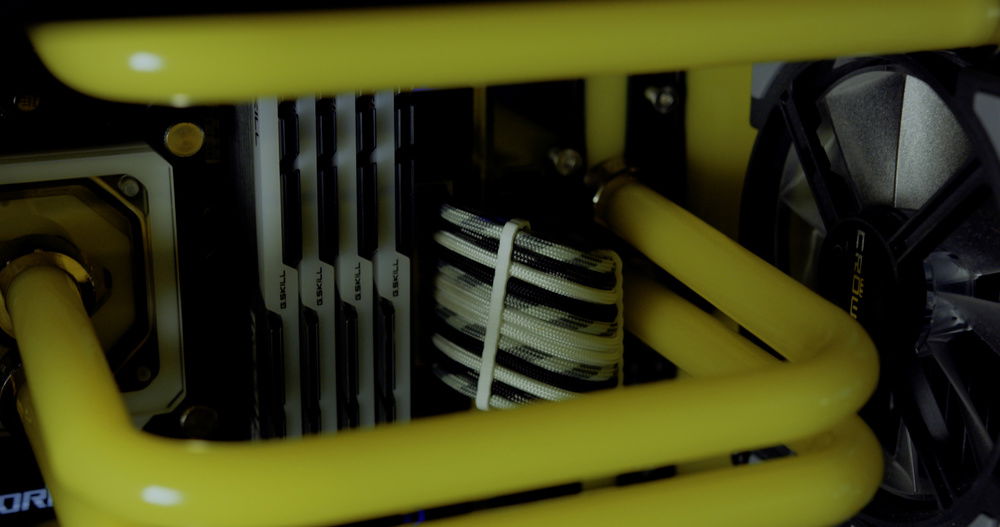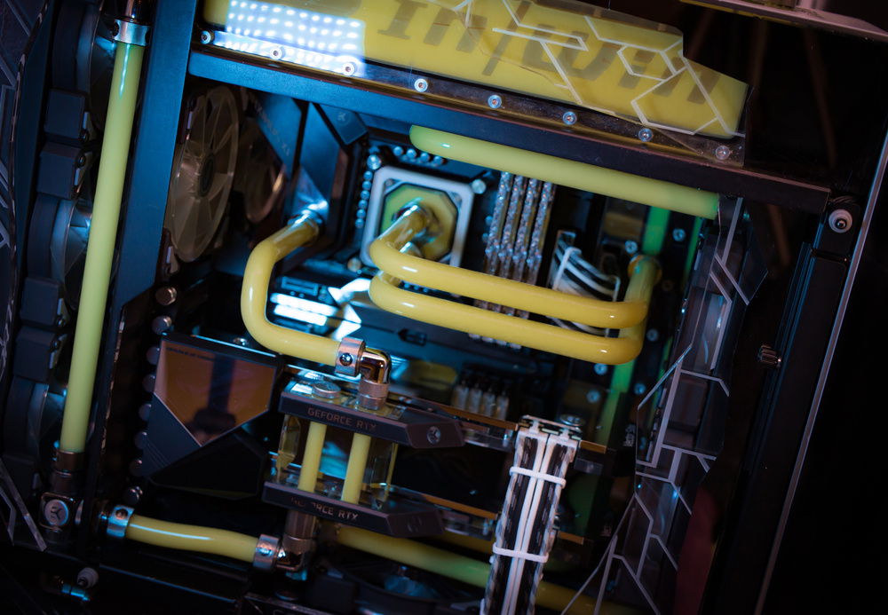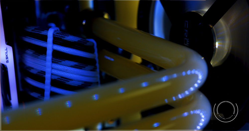 The whole theme of this build, it that it goes with ANY color coolant! all parts are silver/chrome, clear, white, grey and black. so just changer the coolant and switch the lights, and its a whole new theme going ;)