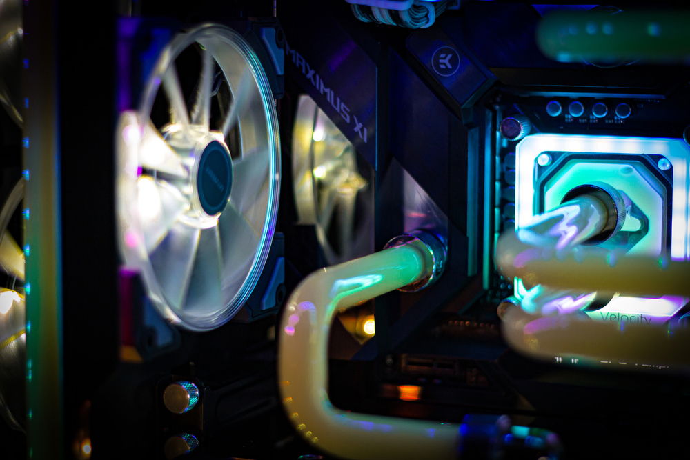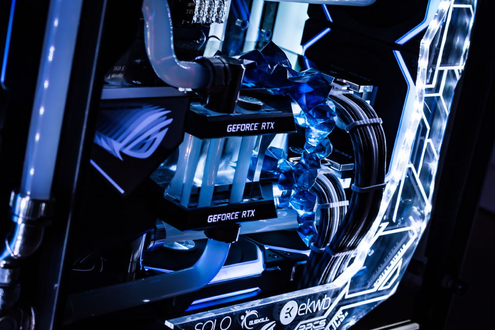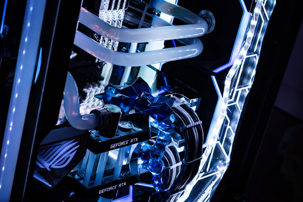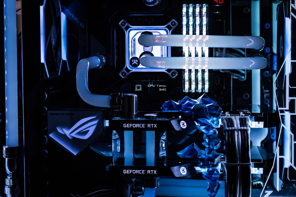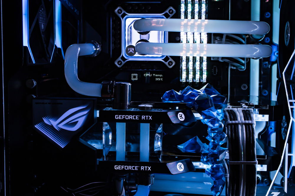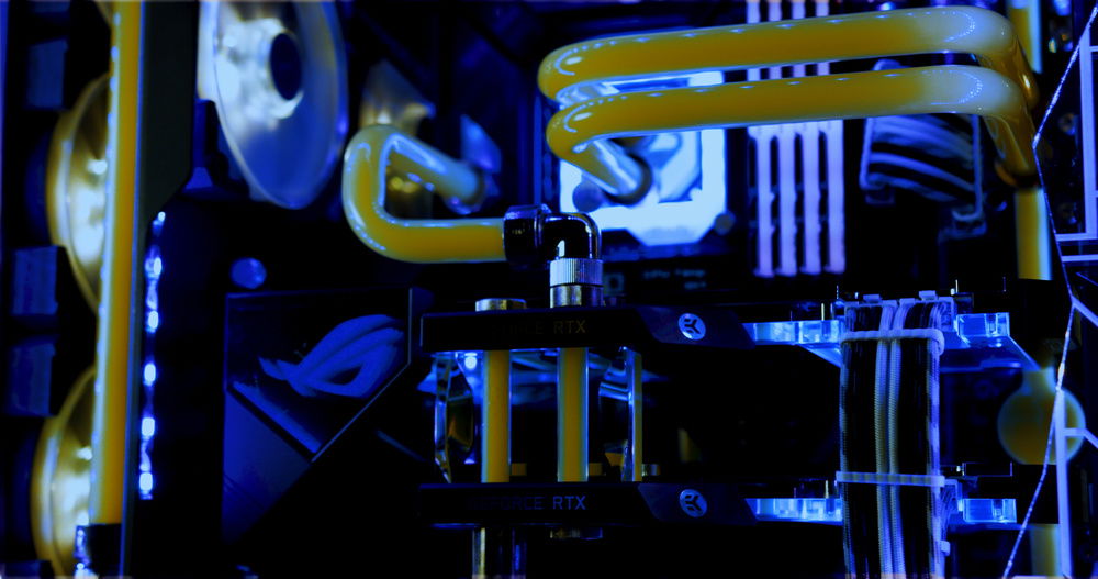All accent lights are driven by ASUS Aura, and fan lights are driven by the EK Connect (Beta)