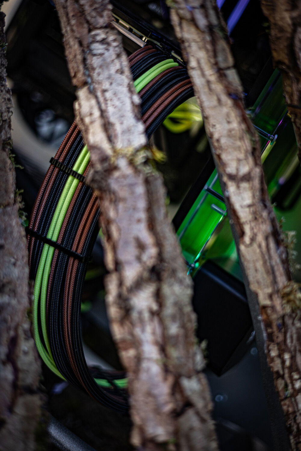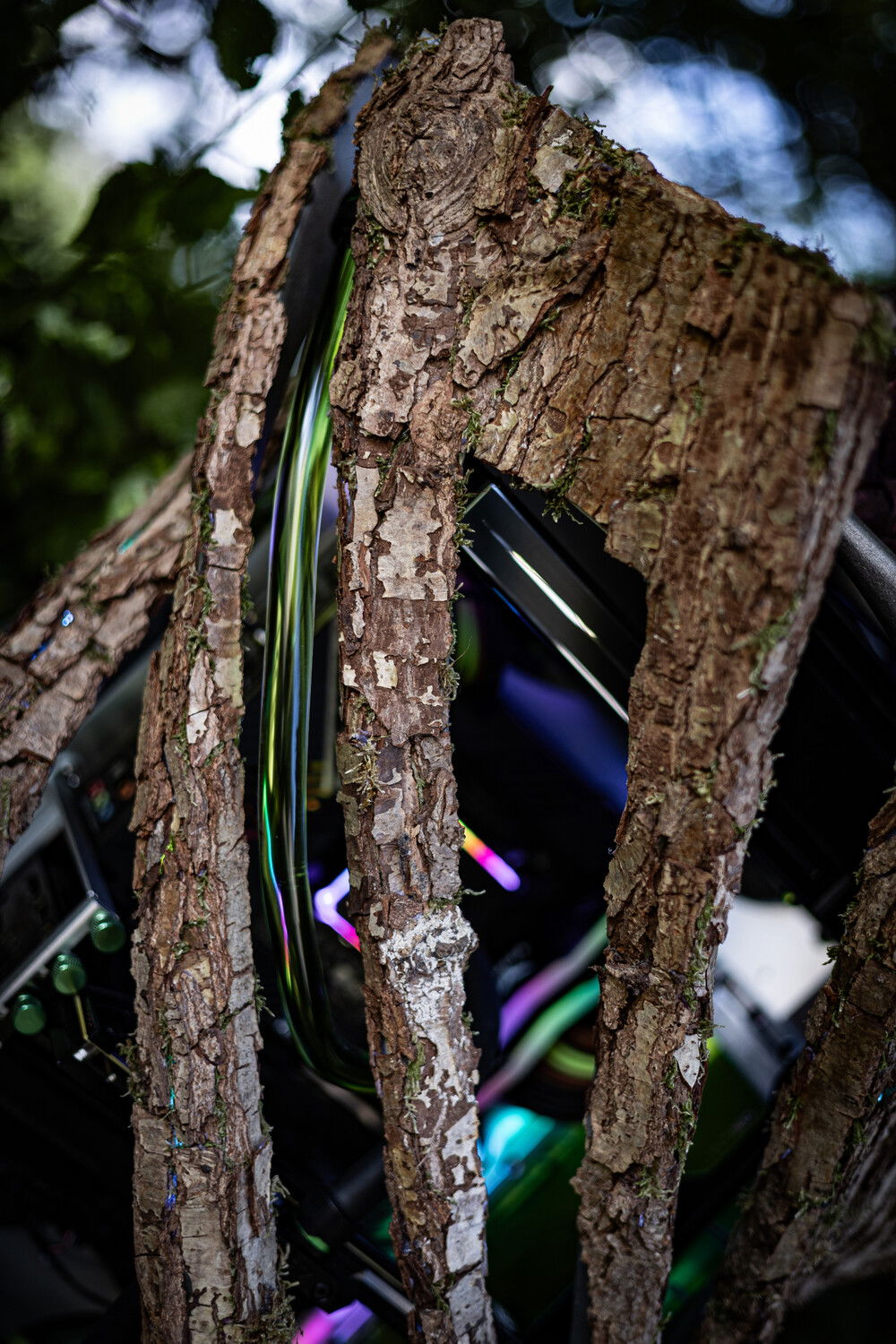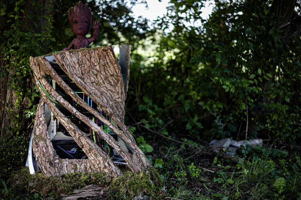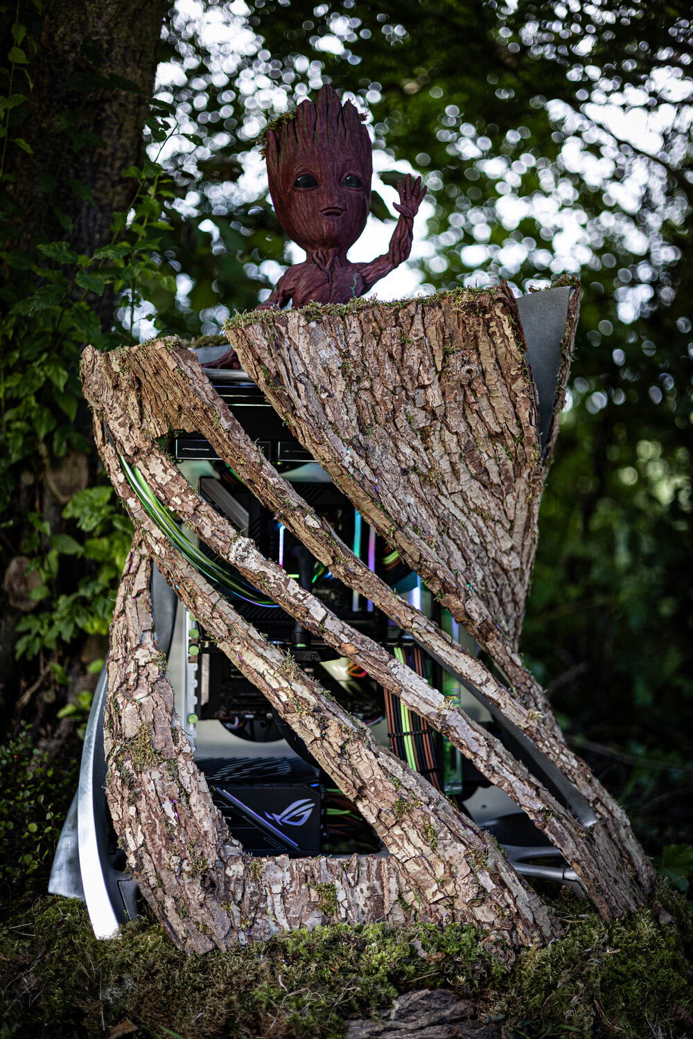 Using the InWin Europe Z-Tower case as a base, we covered it in wood and moss, adding some lights behind it, for that feeling.
