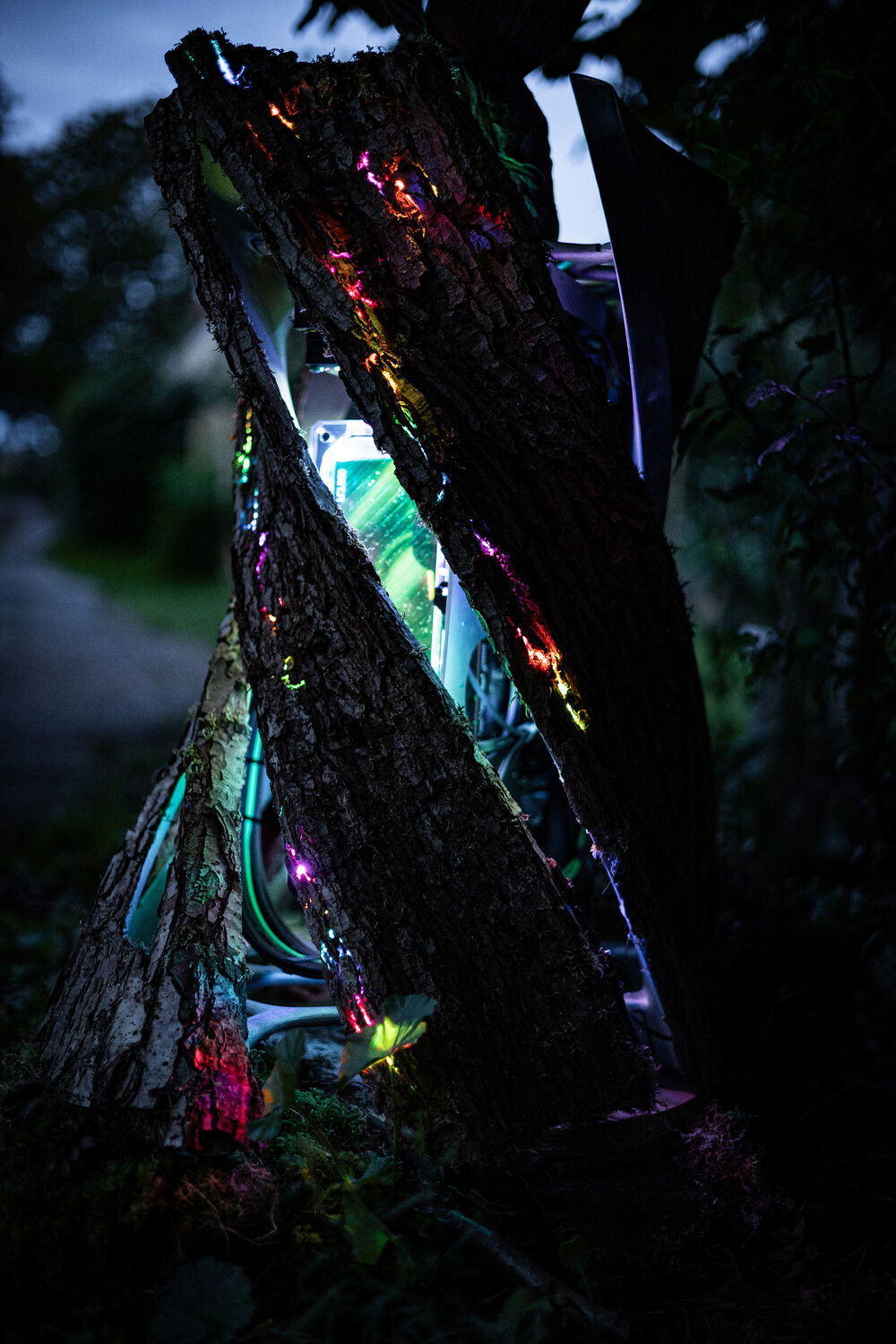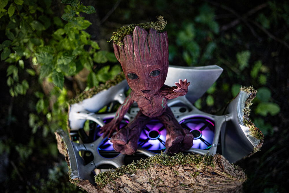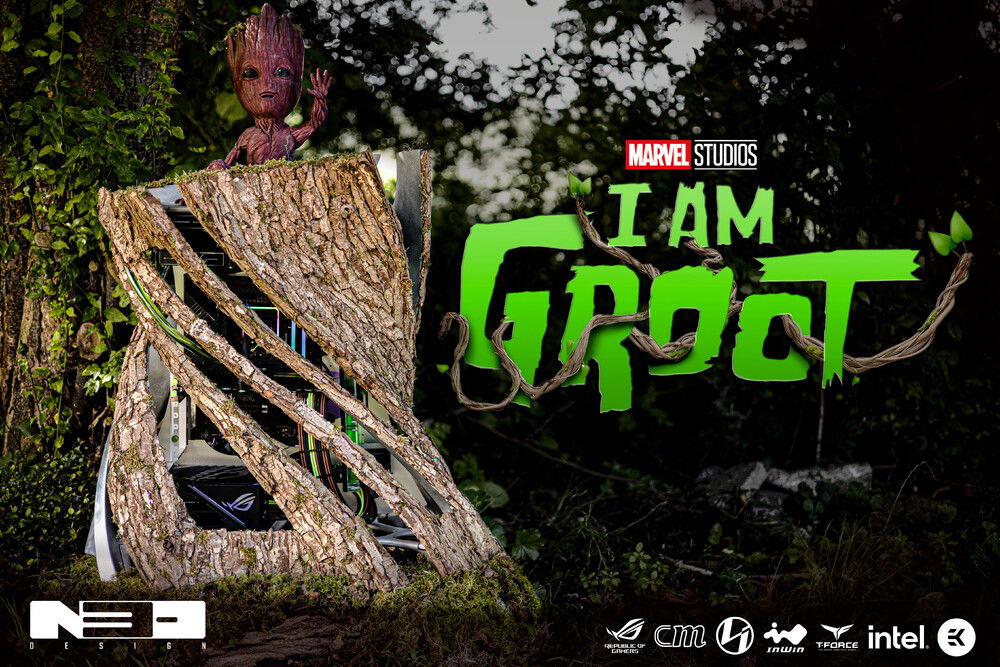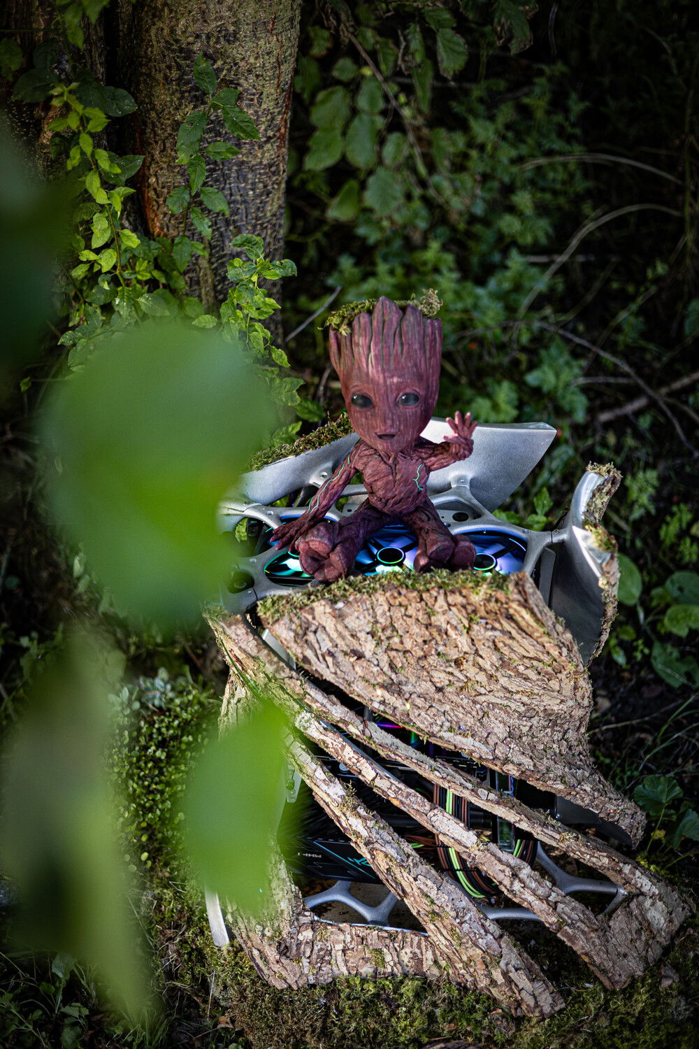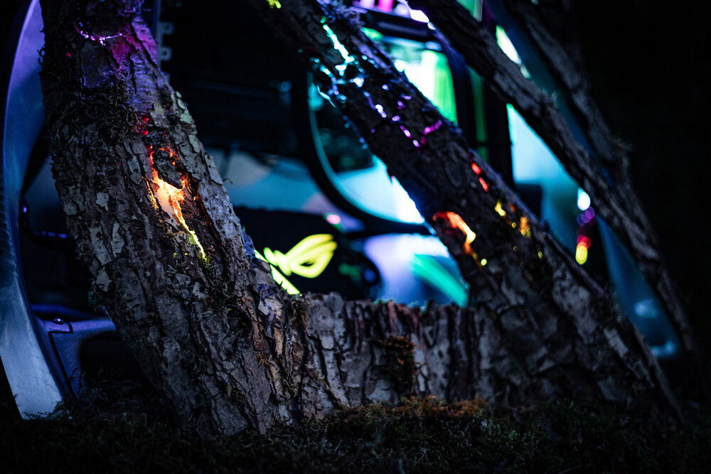 Using the InWin Europe Z-Tower case as a base, we covered it in wood and moss, adding some lights behind it, for that feeling.