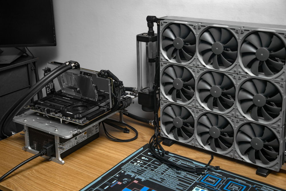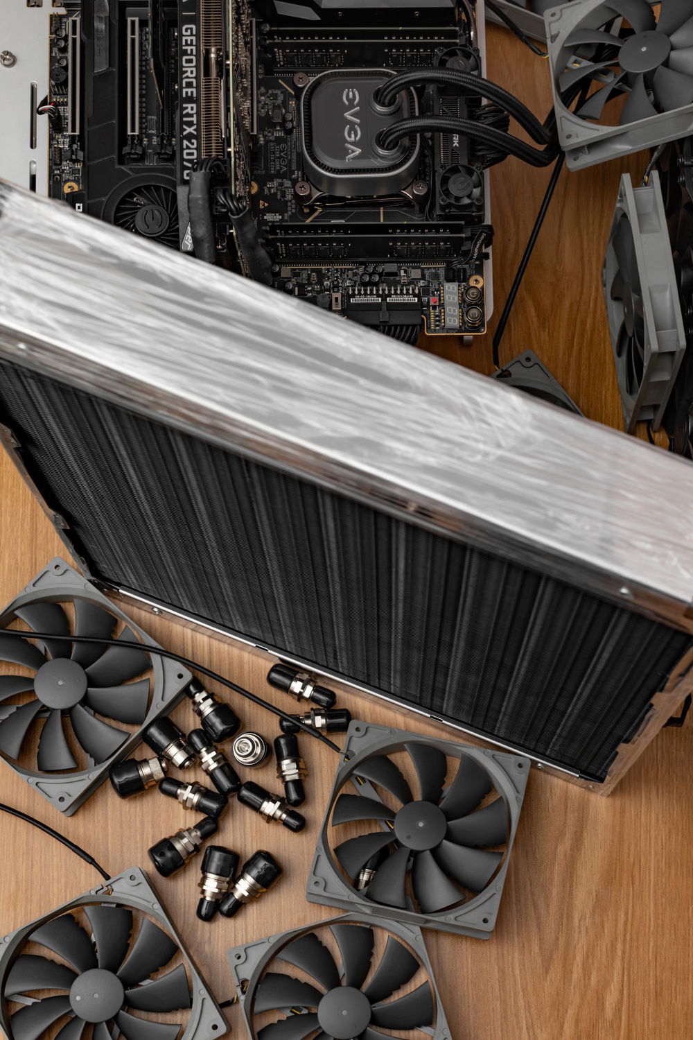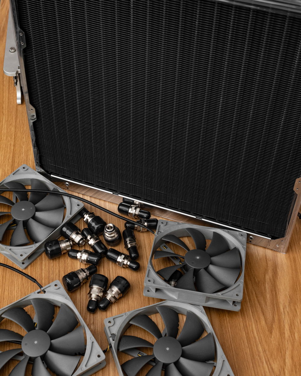The MO-RA3 – This thing caught my attention long before I got into water cooling. I saw it one a loooong time ago, but again most recently in a Gamers Nexus video/live stream. I knew if I ever got into water cooling, I was going to use one. I waited months before starting this project to get one in stainless, they were out of stock for quite some time. As crazy a sight as it is, it’s still less fans than the 17 in Chisai. The Redux fans were an aesthetic choice. The MO-RA3 fins are less dense than a traditional radiator. This allows you to have plenty of airflow even at lower RPMs.