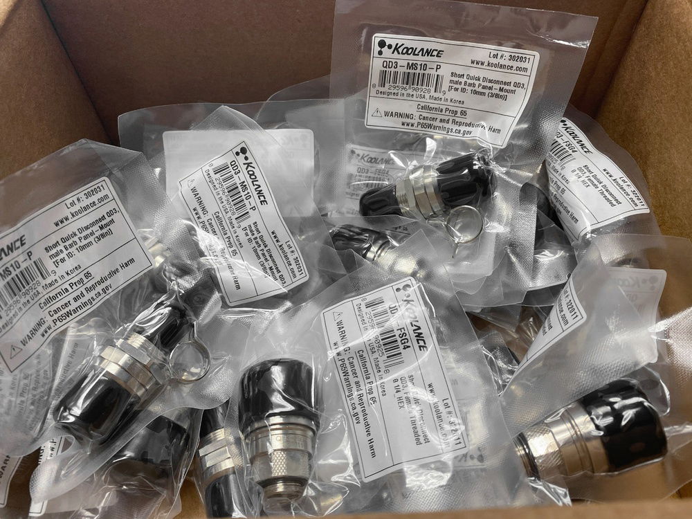 6x Koolance QD3 Male Quick Disconnect No-Spill Coupling, Panel Barb for ID 10mm (3/8in)