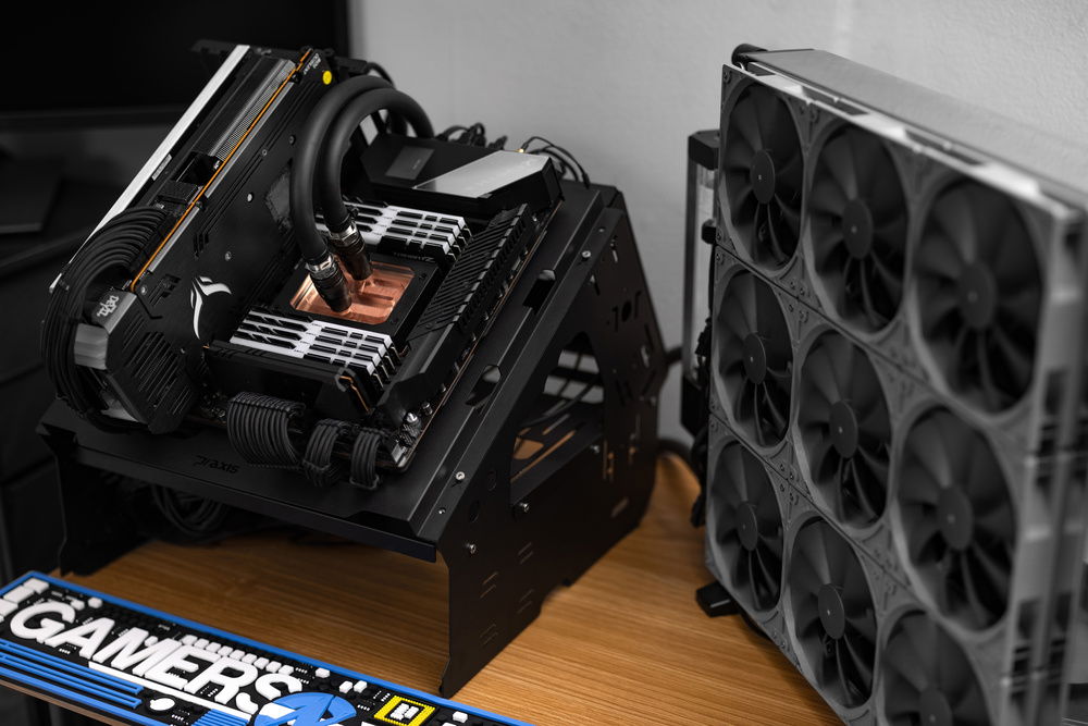 Gotta love benches – The previous iteration of this build was in the Enthoo 719. It was a fine case, but it was not long before I realized I swap hardware far too often to be tied down by tubing like this. There was a lot of hardware in the 719, packed very densely. After my experience with the Openbenchtable for my X299 build, I knew I wanted to go bench.