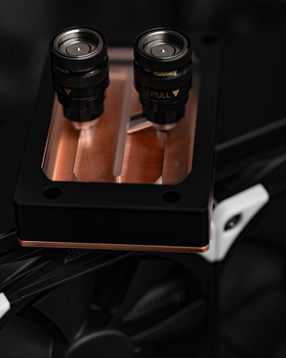 Maintenance is also vastly simpler with this setup. There are lots of specific pieces of hardware when it comes to the MO-RA/Heatkiller Tube combo, so I had to get most of them directly from Watercool in Germany. While I waited, I used my 2nd MO-RA3 from the X299 bench temporarily to get this system running so I could get work done. It is set up with the same Koolance quick-disconnect system, so I was able to connect right in and go. I have draining and flushing the MO-Ras down to a science now, so that takes less than an hour. When it comes to dust, I learned from the other bench setup I have that it does not collect much. The fans are on the MO-RA3, and the radiator fins are not nearly as dense as traditional radiators. This keeps dust to a more than manageable minimum.