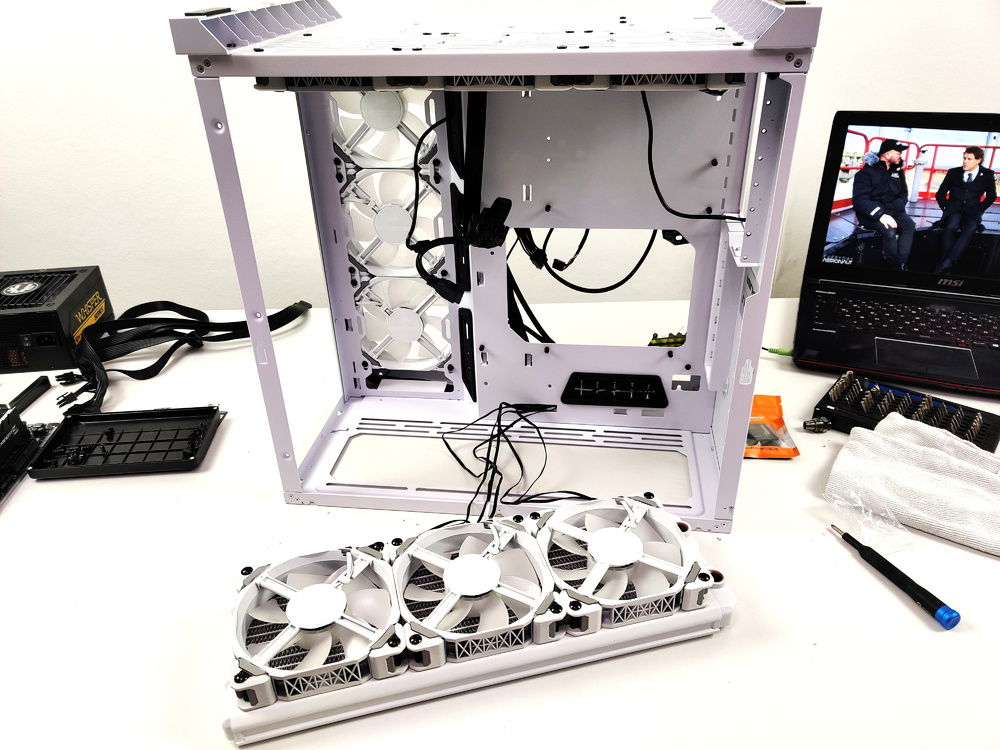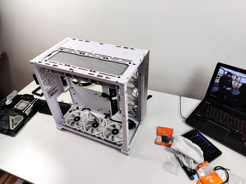 With the system posting, I installed the PSU and 4 case fans. The remiaining 5 will have to wait for Phase 2 of the project. The PC-O11 Dynamic is a really nice case to work in!.