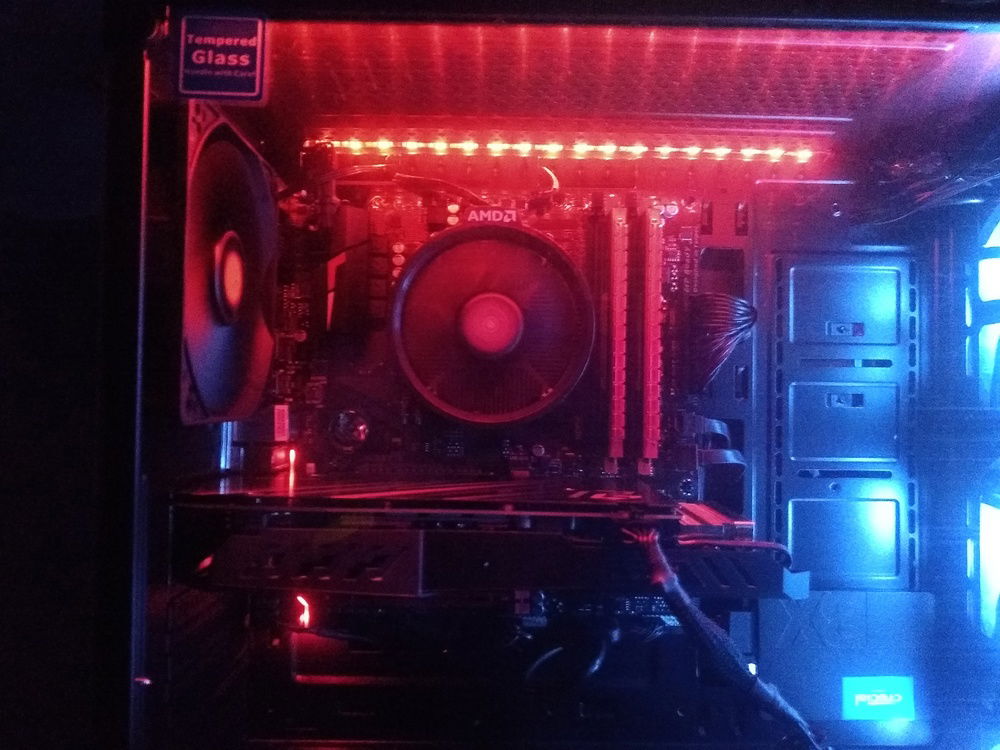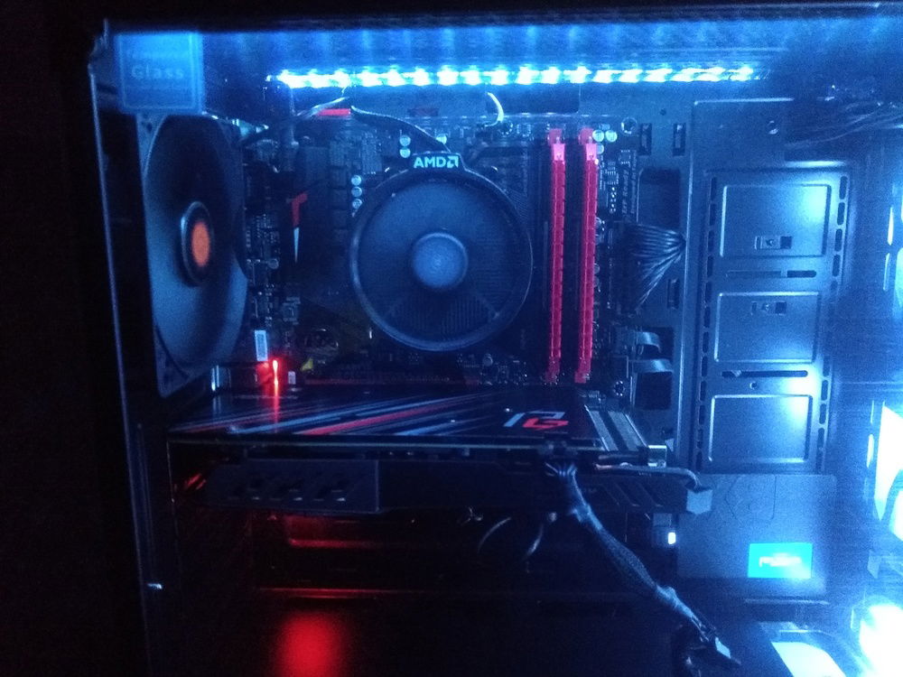 Pretty basic build that will be a good gaming computer with all new parts Windows 10 pro. All fans come with the case and the CPU cooler is stock. I added led strips at the top of the case to light the case up better. It has a 750w EVGA PSU just for later upgrade purposes.