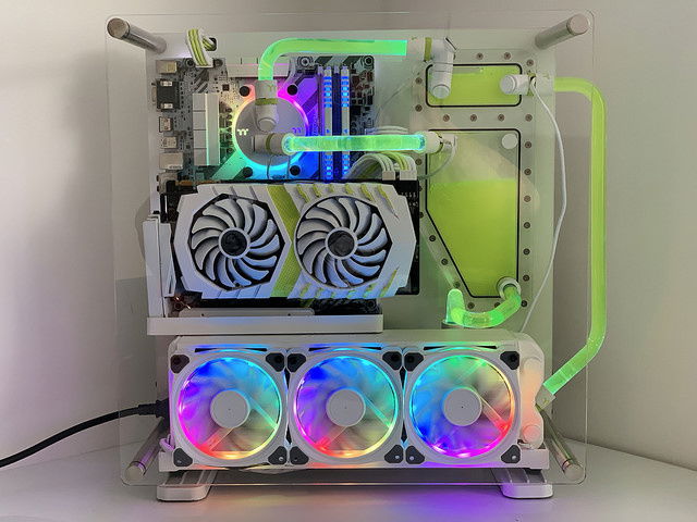 I had seen a lot of builds in the thermaltake core P3, but I had not seen any builds where the rad was on the bottom of the case.