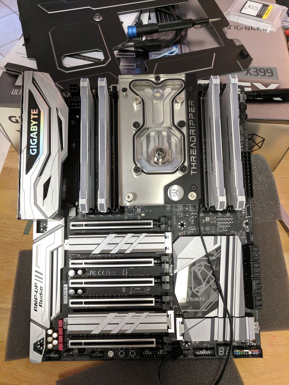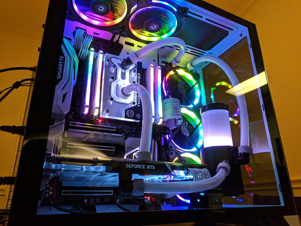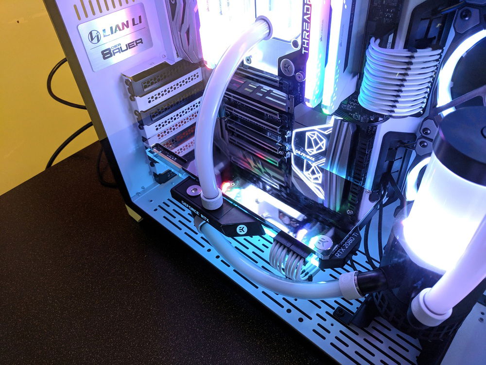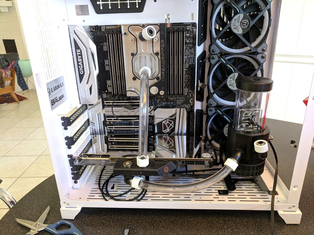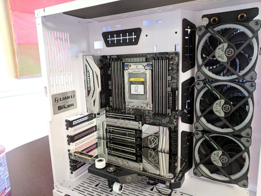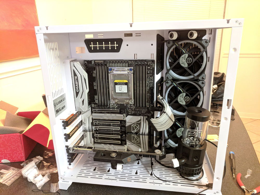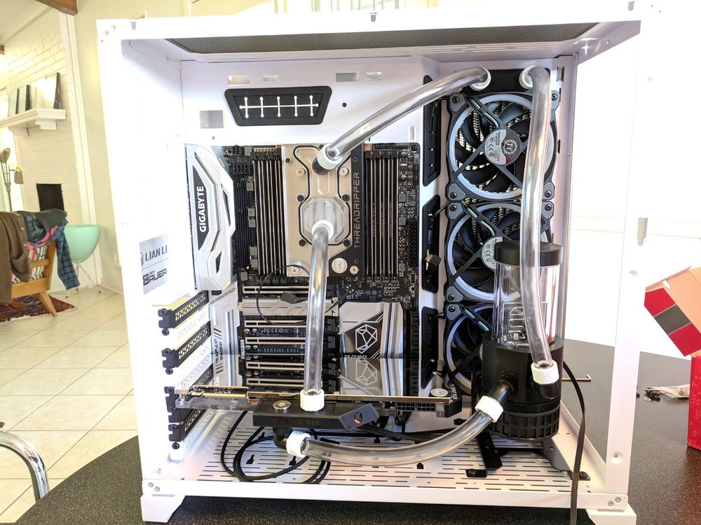 There were not a lot of X399 motherboards to choose from at the time. The Gigabyte DESIGNARE EX fit my look. While searching for cases I fell in love with the Lian Li PC-O11 Dynamic layout. The all glass front and side mounted radiator was a different and intriguing setup.