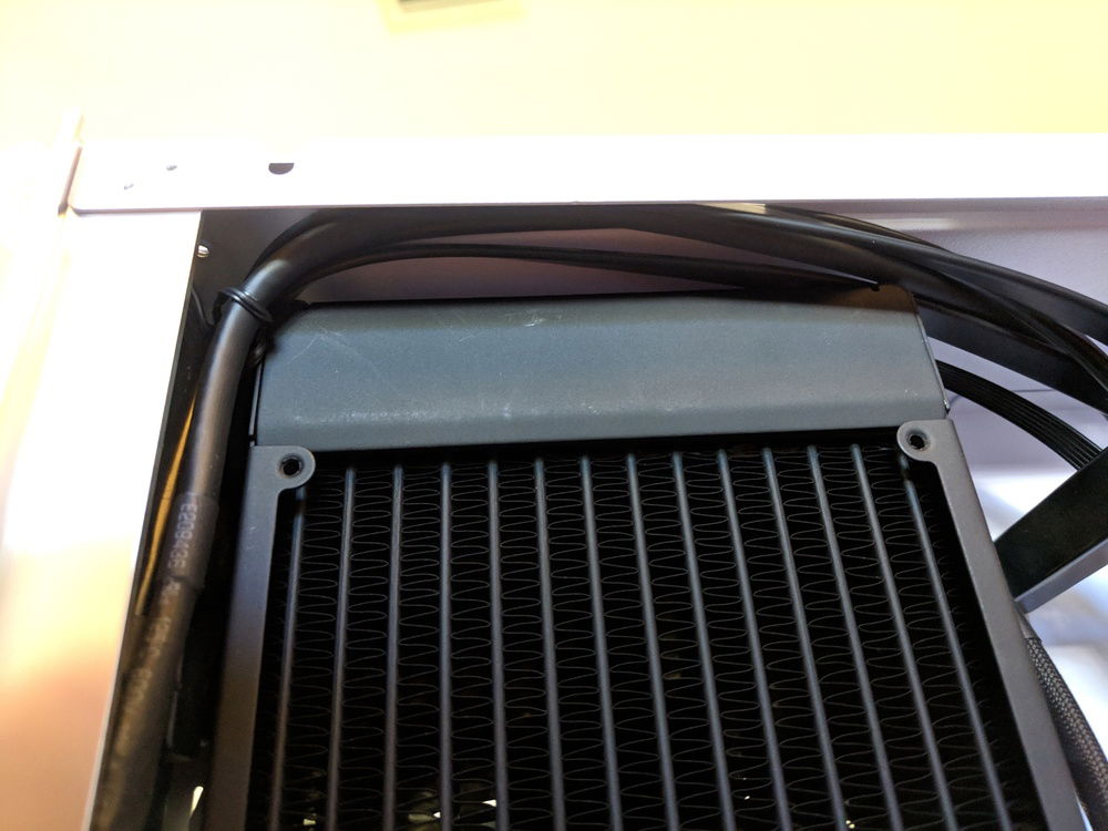 * Single 360 radiator seems to be enough cooling. CPU stays under 66c and GPU under 52c during CPU and GPU stress test after 15 minutes load with fans at 100%. The idle temps with fans all low are about 34c for both CPU and GPU.