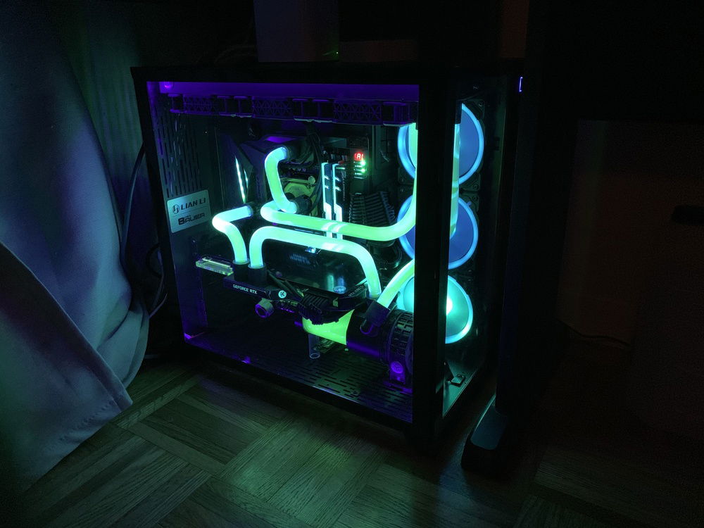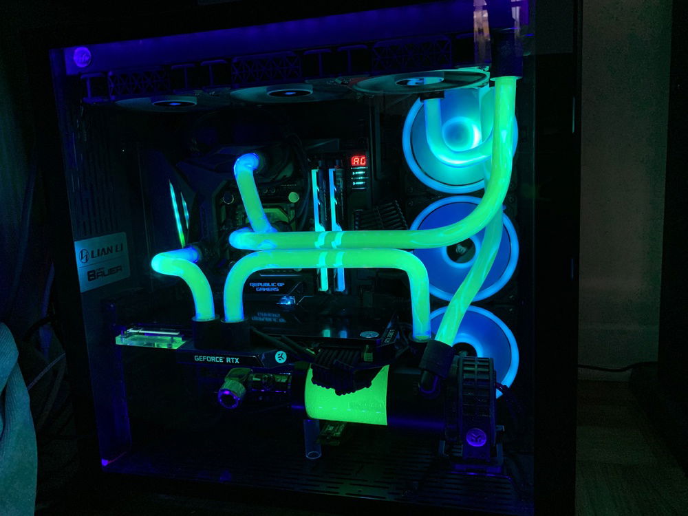 Played with a mix of diluted opaque coolant, UV lights and RGB fittings.
