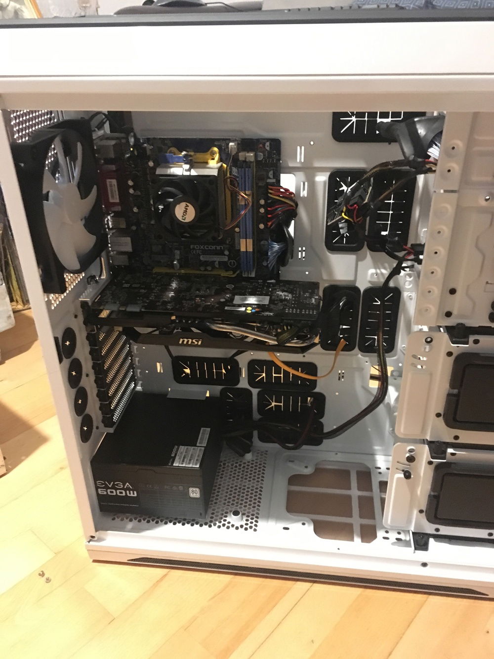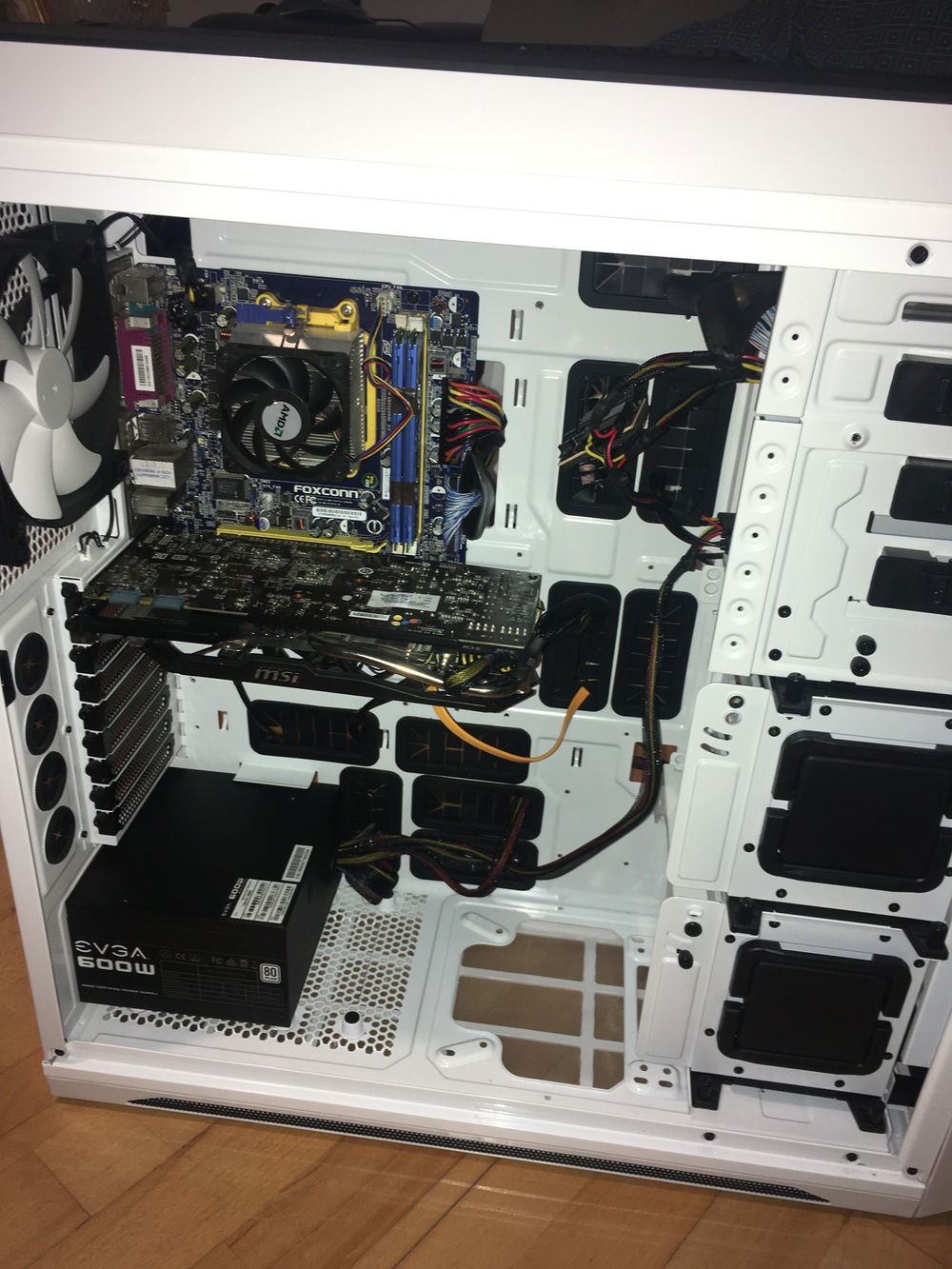 I managed to cook something on my laptop which was about 3 years old and wasn’t worth any repairs so was fit for the bin. I have very little money at present due to house renovation so this is absolute budget.We had recently moved house and used my in-laws garage to store stuff during the move, when clearing out the garage I cam across my father-in-law old pc which years ago I promised to wipe the hard drive and forgot all about it. So decided to see if I could restore it to working order. The case is battered and had a puddle of water in it not a promising start. I decided to take it home as I needed a machine for general word and excel docs. The PSU looked very rusty so decided to bin it and buy a cheap 500w to replace it. Before booting the pc I dried off what I could and left the pc in my airing cupboard for 2 weeks. Momtof truth new PSU fitted powers up but no disk recognised with the disk making really bad noises, thankfully I have my 250gb ssd from my laptop with win 10 os. Stuck that in great we are getting bios and a window boot. Unfortunately windows failed to boot due to the licensing being locked to my laptop. Thankfully I had the original win7 disc for the pc, a format and install later I’m up and running all be it at a very slow speed due to the bottleknecking at the cpu I can live with it though. After a bit of hunting around a week later I found for £20 a phenom II x4 b55 to replace the Athlon II x2 250 in my micro atx am2+ Foxconn MB. Fitted and slight OC boot time is 15sec happy days. W few weeks ago I purchased a GT610 1gb gpu not great but affordable and a considerable upgrade to the on board gpu which is shocking at least I can play a basic game on my pc such as sins of a solar empire.