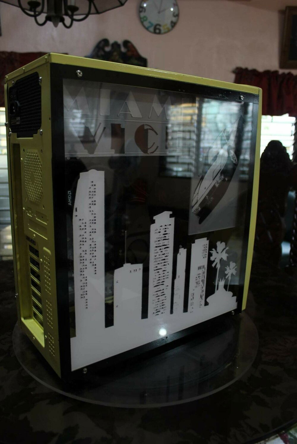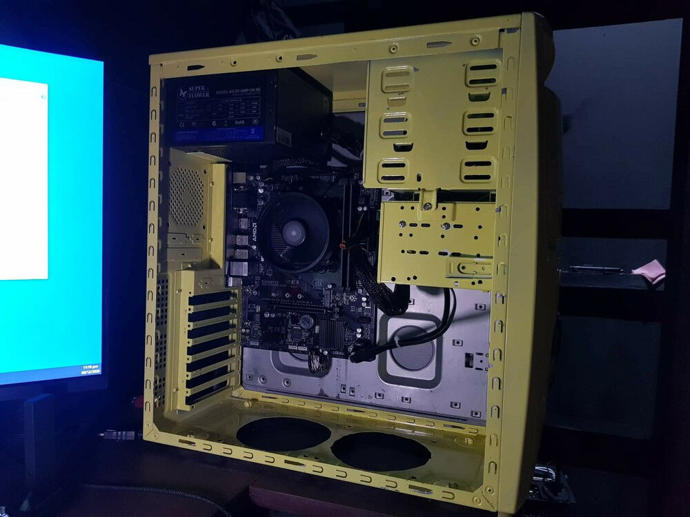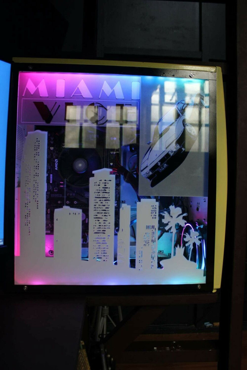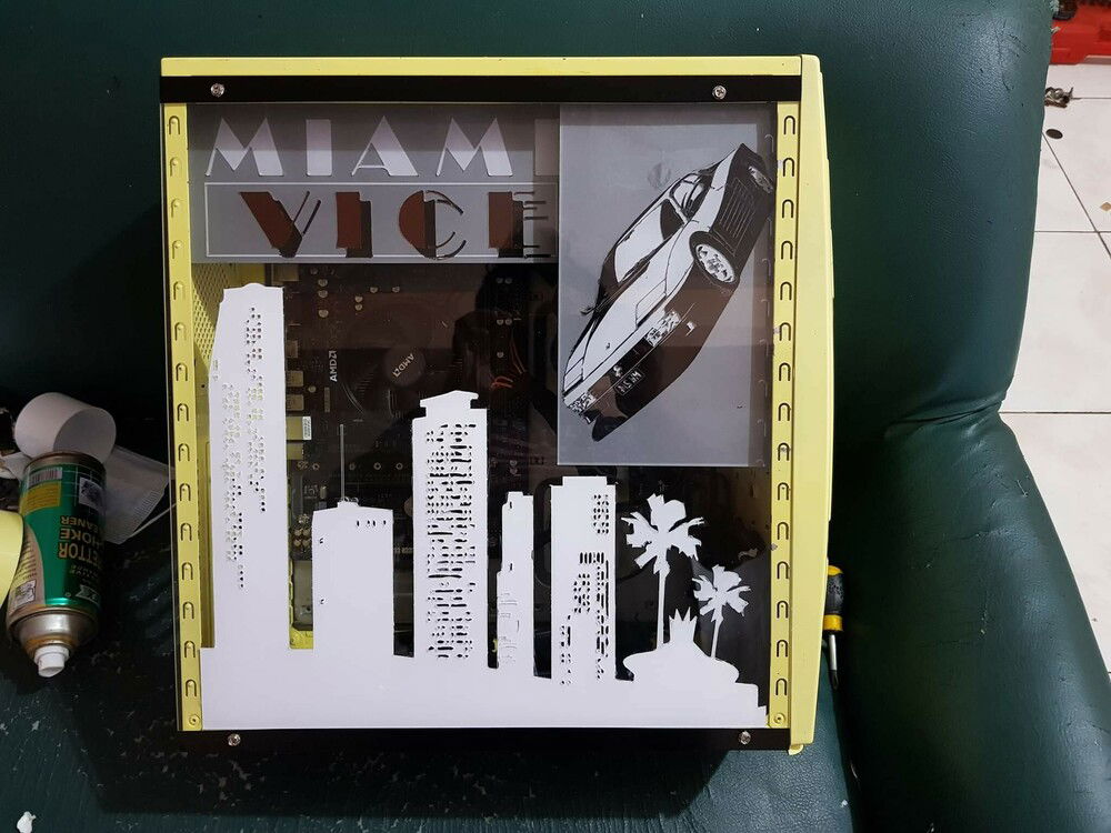 This build was ordered by one of my regular clients. he asked for an apu build for office work.( he had an idea of what he liked because this was hia 2nd purchase) but this time this would be his personal machine and asked if I can create a miami vice theme with a matching old pc case. luckily i had one lying around.