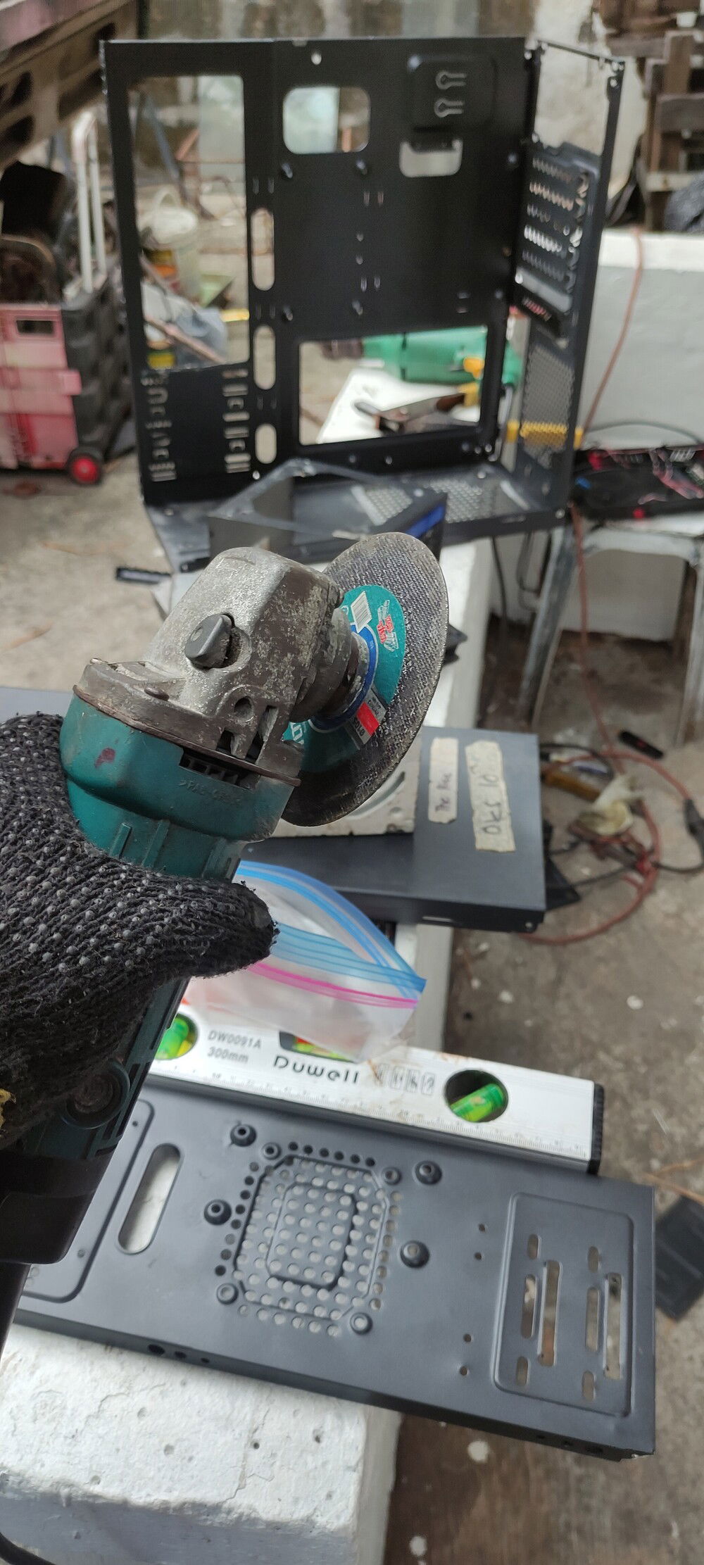 this is a Case mod for an existing client build. it started as a maintenance job which turned into a case mod to make the pc fit in a wall mounted shelf.