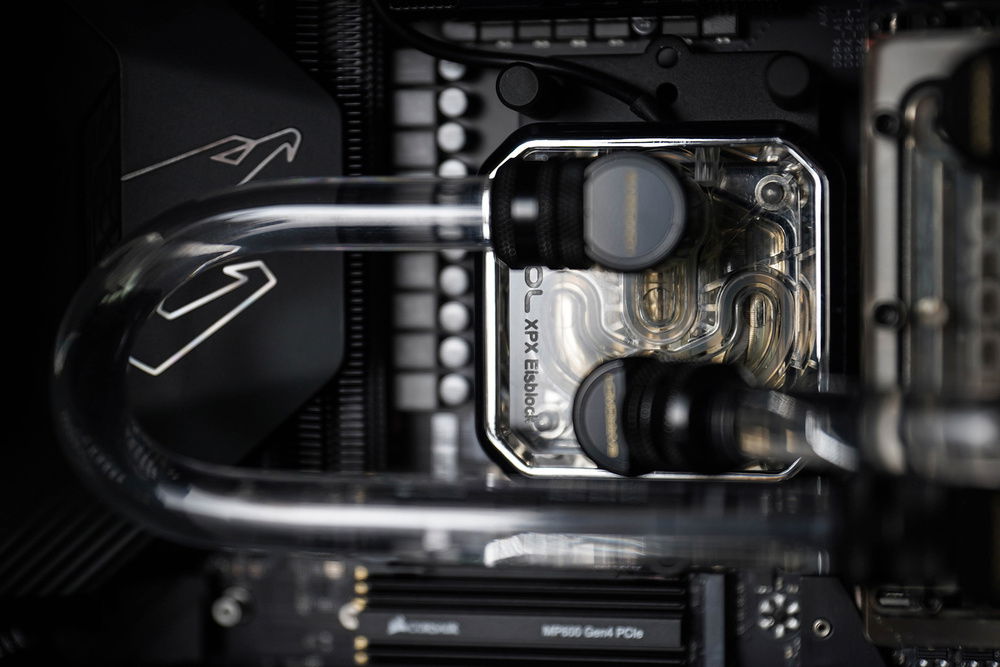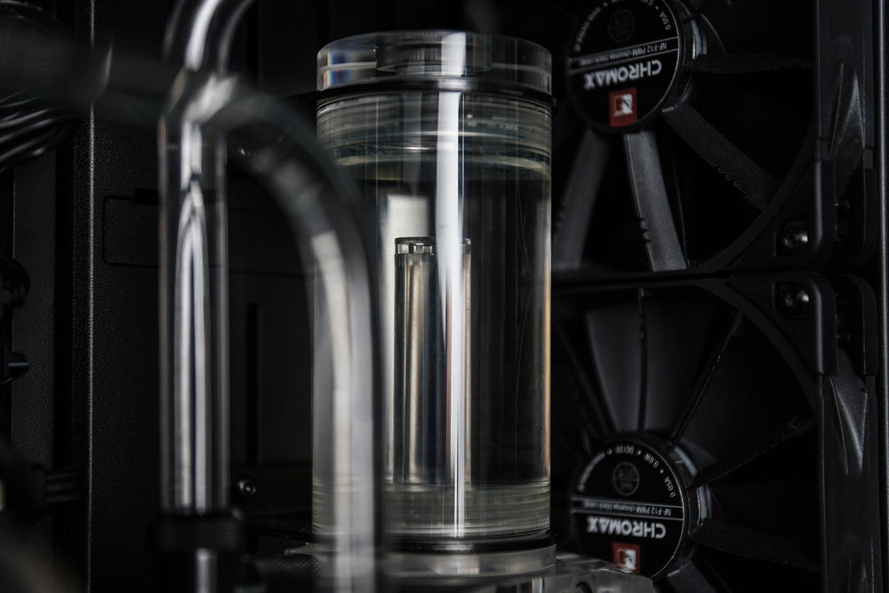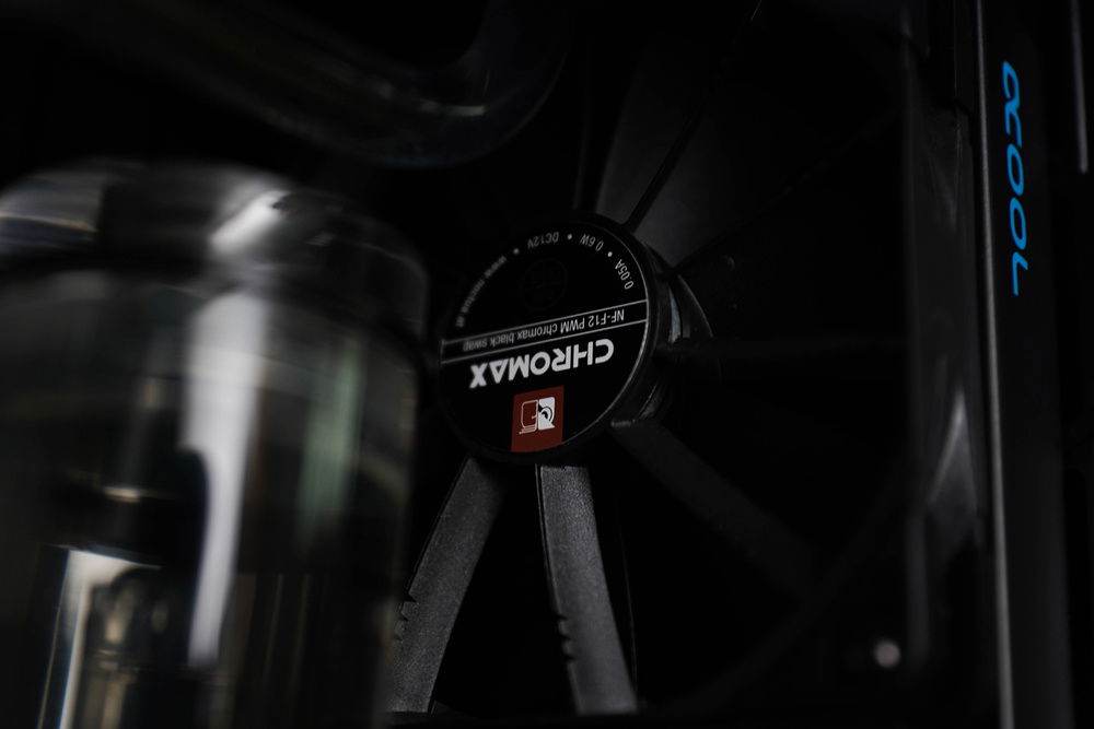 Every individual component was chosen for their performance and aesthetic. Heat management is handled by Alphacool Eisblock CPU and GPU coolers, with additional RAM cooling using the Alphacool D-RAM Cooler X4. We also used the signature full copper Alphacool NexXxoS radiators paired with the inimitable Noctua NF-F12 Chromax fans for ultra silent performance.