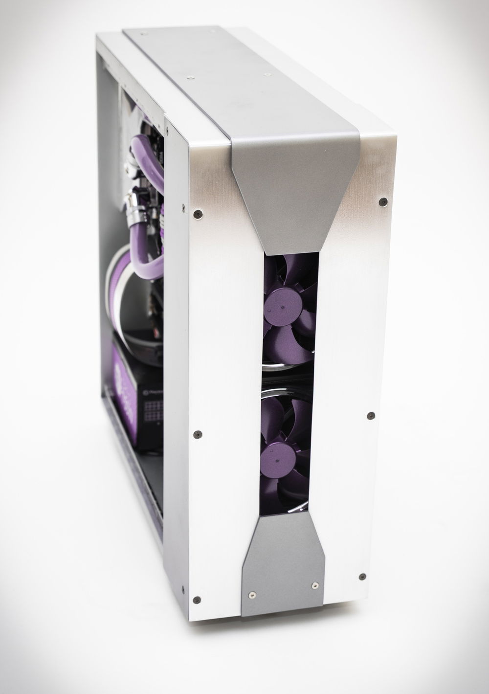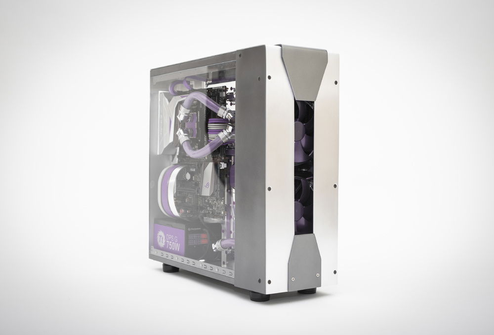 Built for the 2016 Thermaltake UK Modding Trophy, this project began as a Thermaltake Core X31. It features a fully remodelled interior and exterior, cnc and hand cut. The internals were largely replaced with a large distribution panel that not only contains the coolant runs, but also integrates the pump, the motherboard, graphics card, SSD and cable routing.