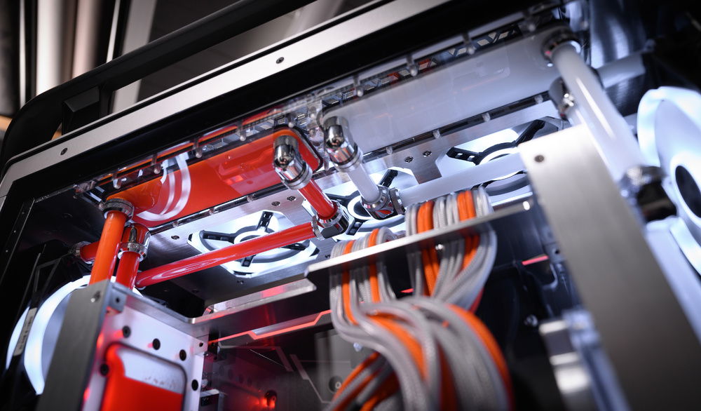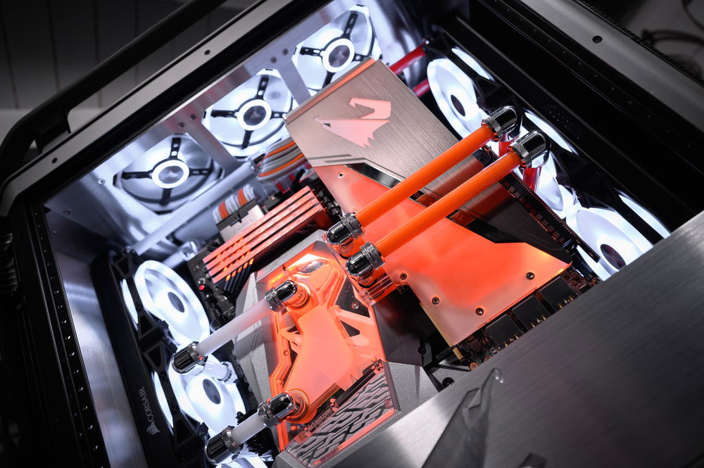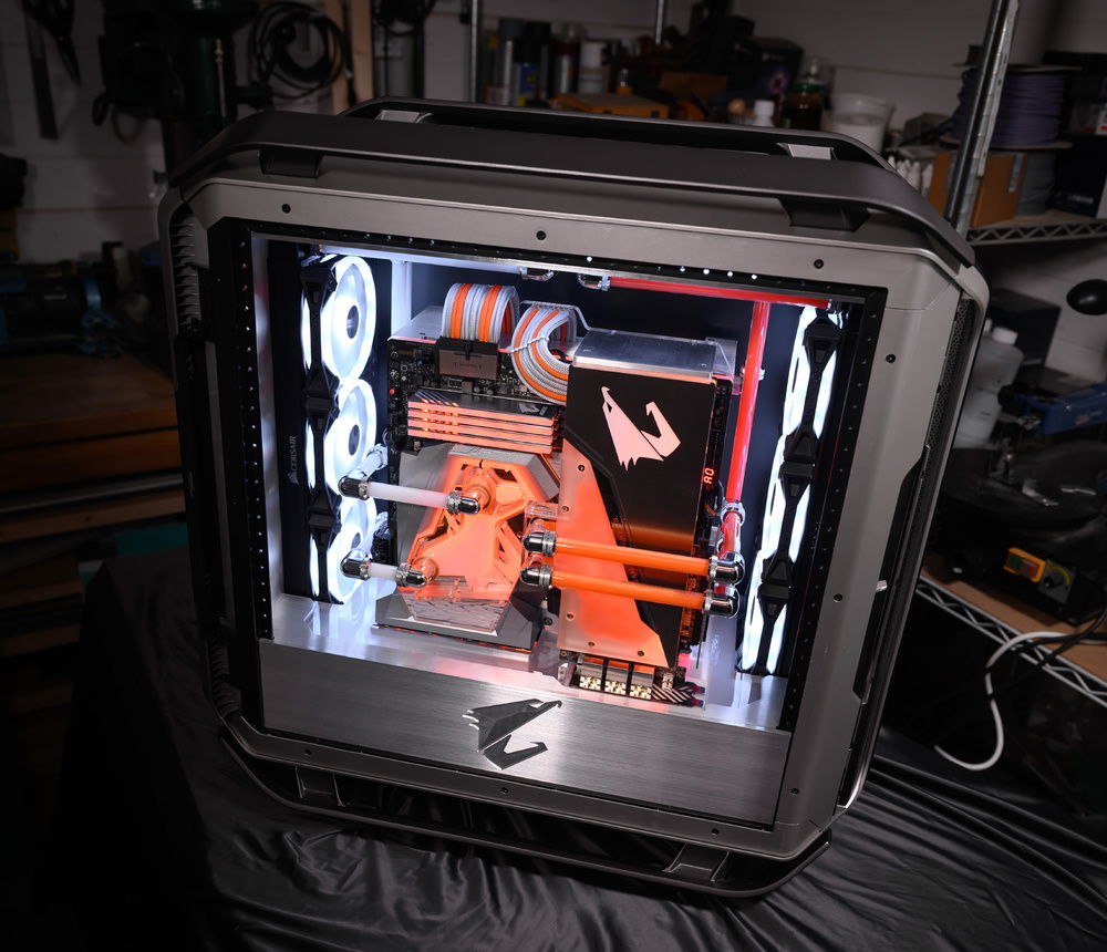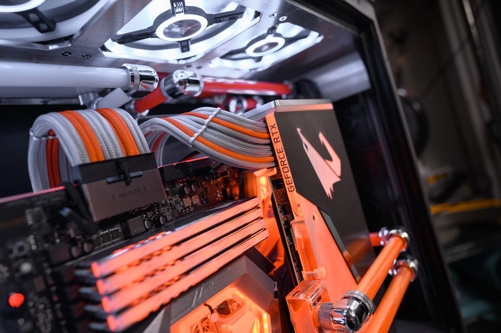 This is a build that as commissioned by Gigabyte and Intel for the release of the i9 9900KS. All machining and design work was done by me, the build features 3 distro plates and an internal chassis constructed from 5mm aluminium. The cables were made from scratch and again sleeved by me during the assembly stage.
