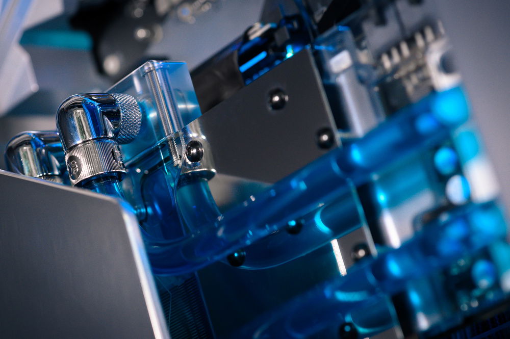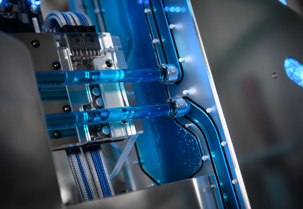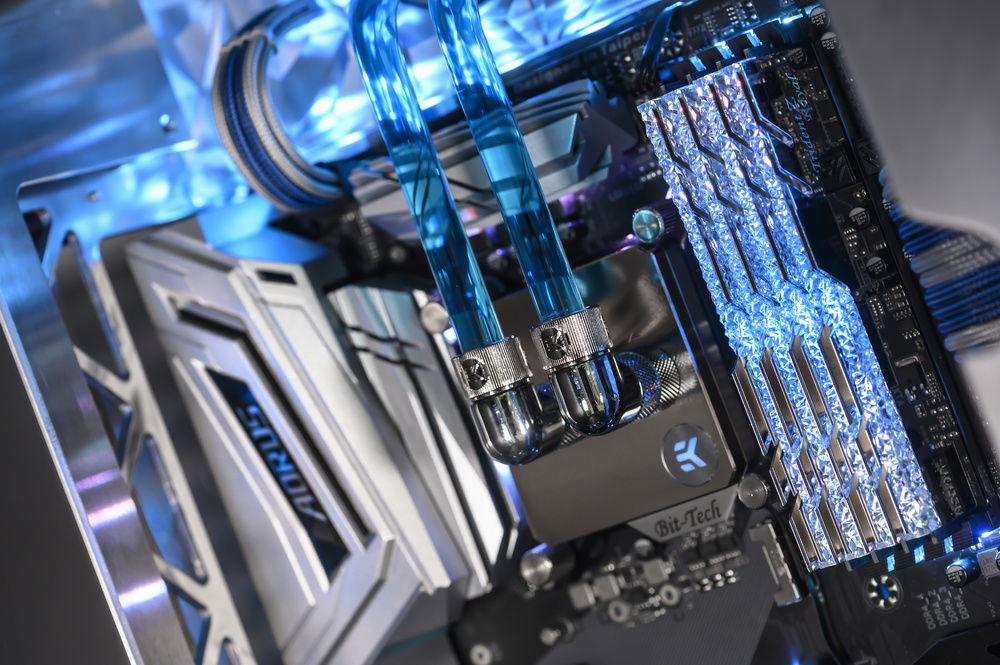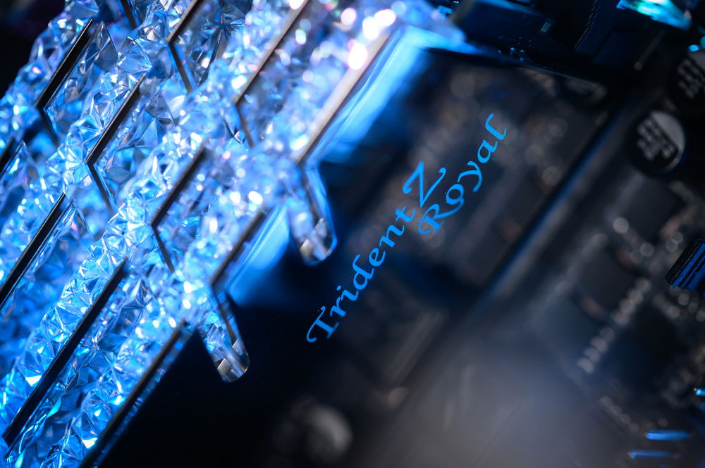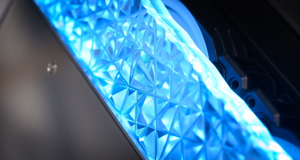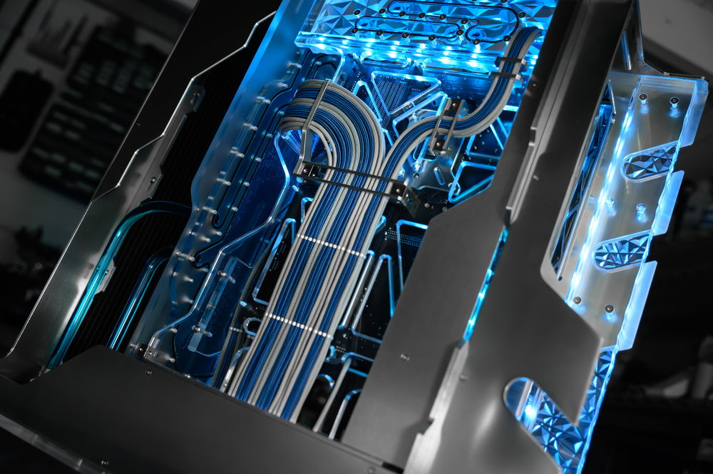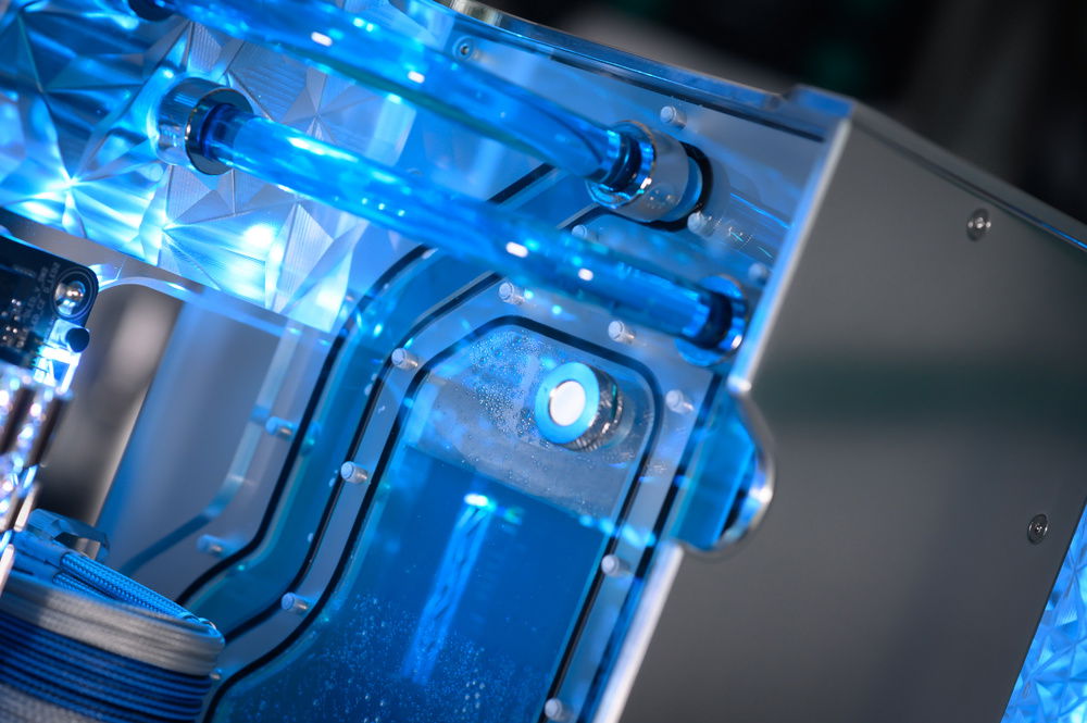 The entire chassis was designed from the ground up to show off G.Skill's Trident Z Royal RGB memory. To do this I incorporated their crystal pattern into the distro plates and lighting panels. The pattern itself is 3D milled from acrylic, there are no decals or films used here and everything was cut from scratch by me.