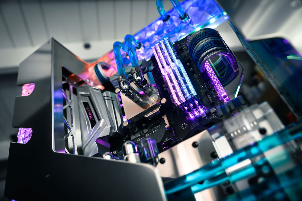 A scratch-built rig I designed and constructed for G.Skill's booth at Computex 2019.