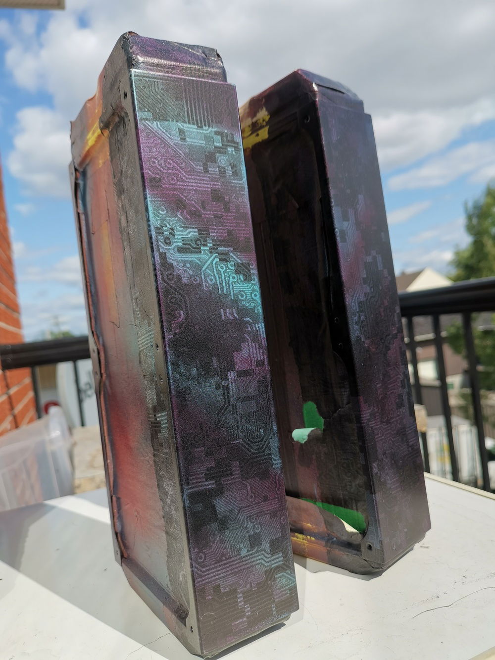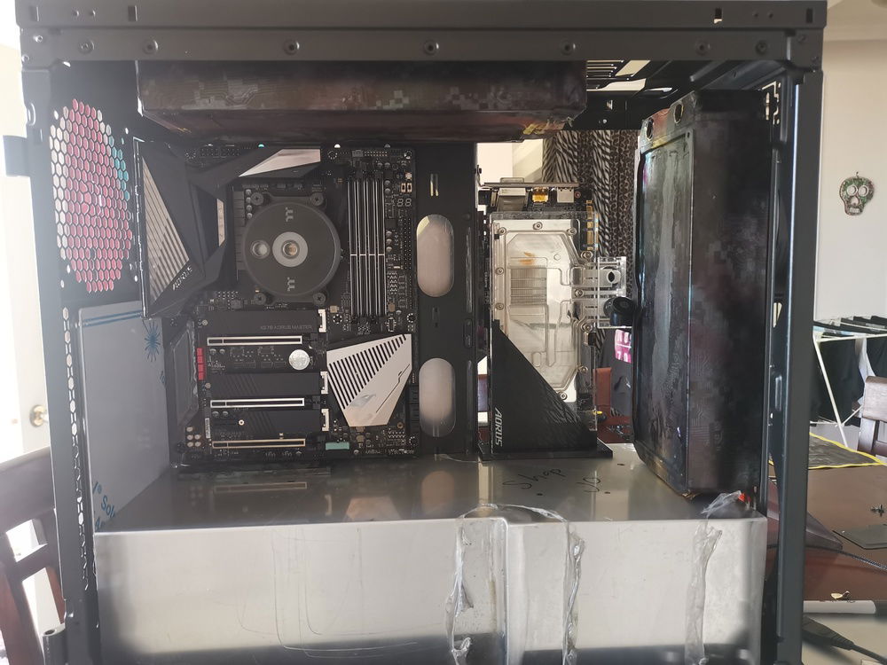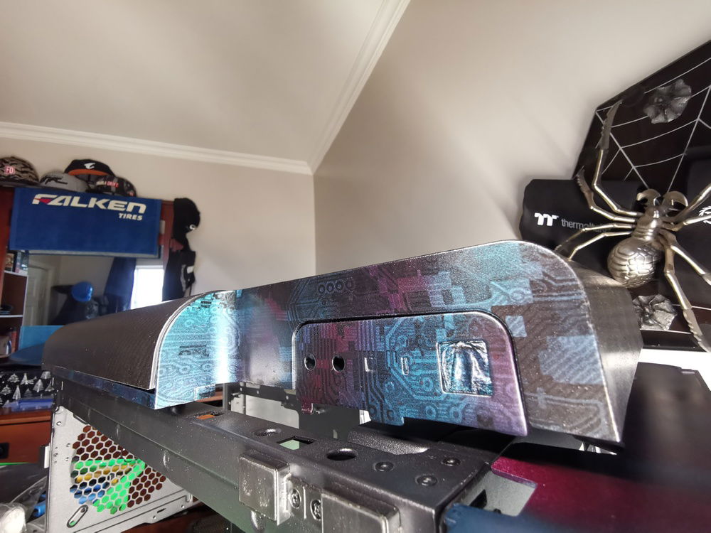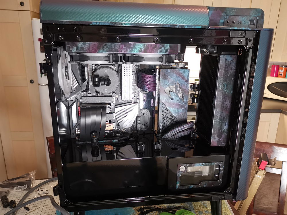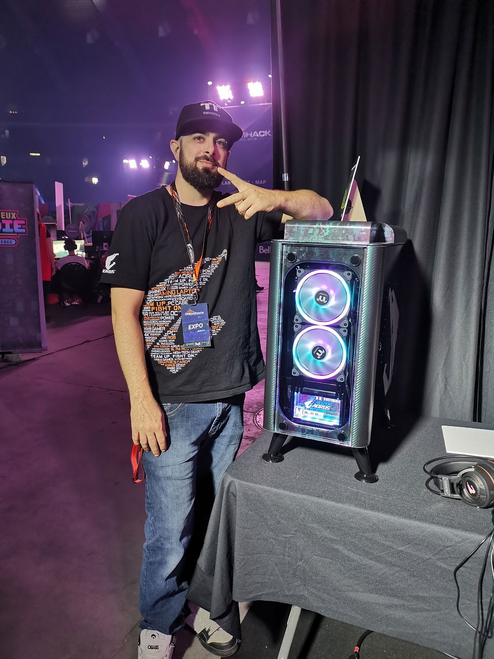 I did put a lot of time on this one as my second mod i wanted to step my game up and make something different than the last time i think i made a nice a clean mod by adding these res on both side of the shroud and at the front an infinite mirror, i made a back door to hide the cable and made it easier for cable management, changed the emplacement of the gpu to put it on the side of the mb, the paint job was easy 3 color doing some nice design but the hydrodip was a new thing for me has i never made hydrography before and had to learn the hard way to get to a point i liked the results i powdercoat the skeleton case and the shroud and the back door for a clean glossy finish i added some nice add-on to match together with the liquid i chose for both reservoir, the build is fully build with aorus and thermaltake products as the build was made for an event at dreamhack in Montreal at the Aorus booth I hope you guys likes it I've put a lot of time into it just missing another led strip up front gonna had this soon !! Haha