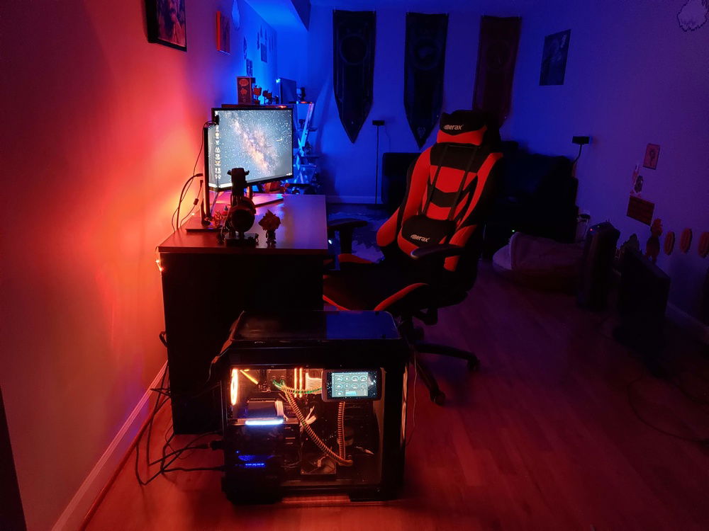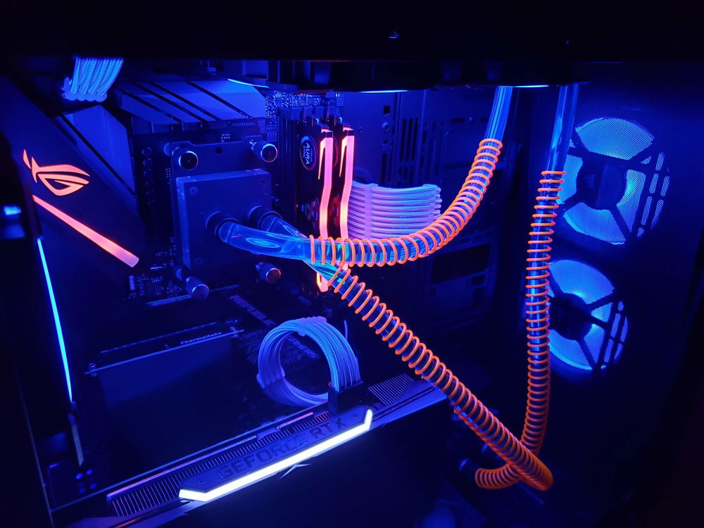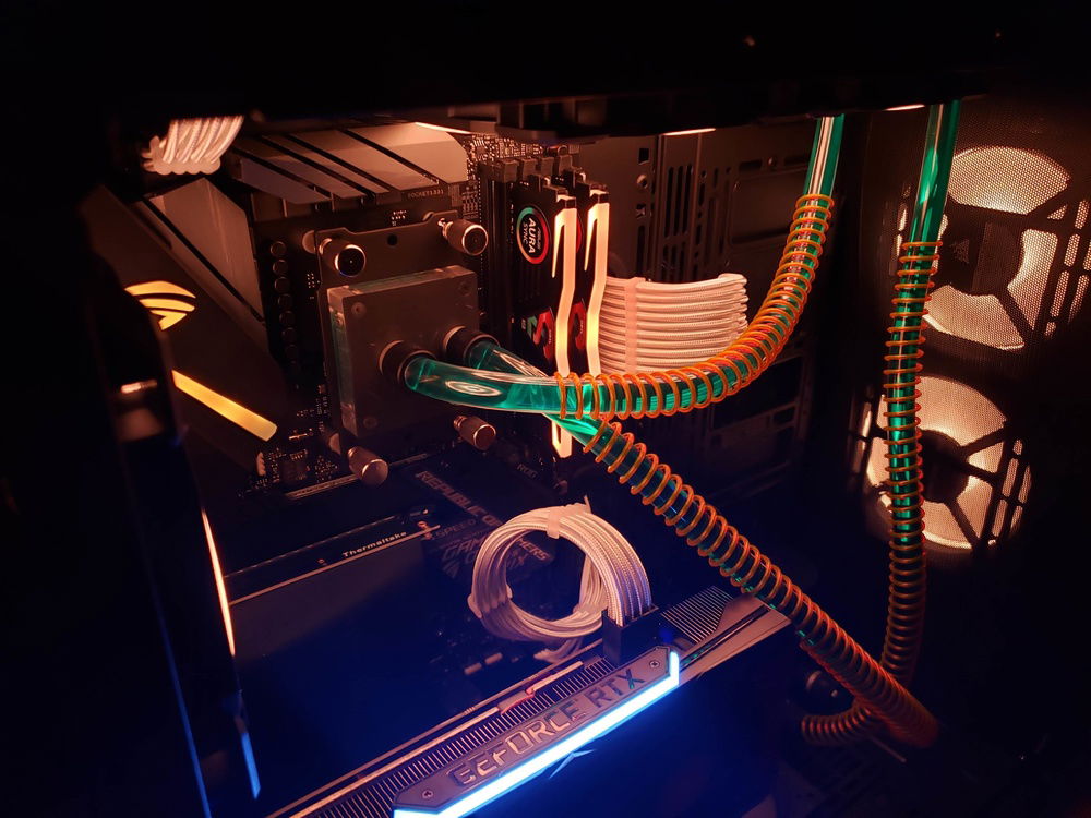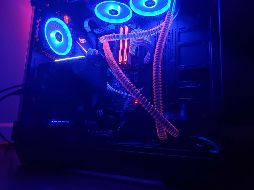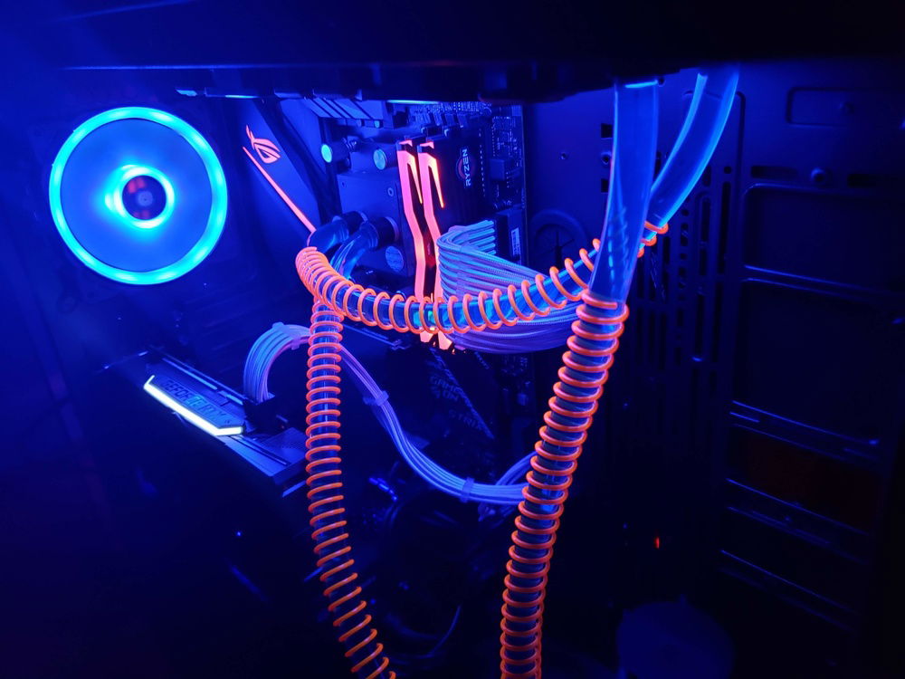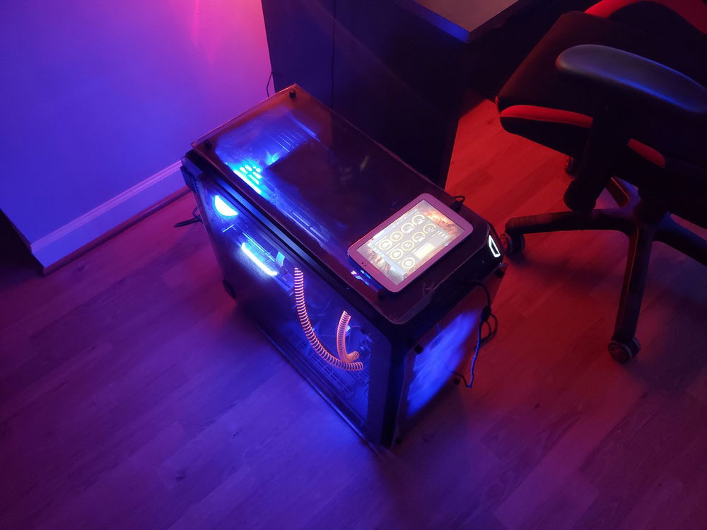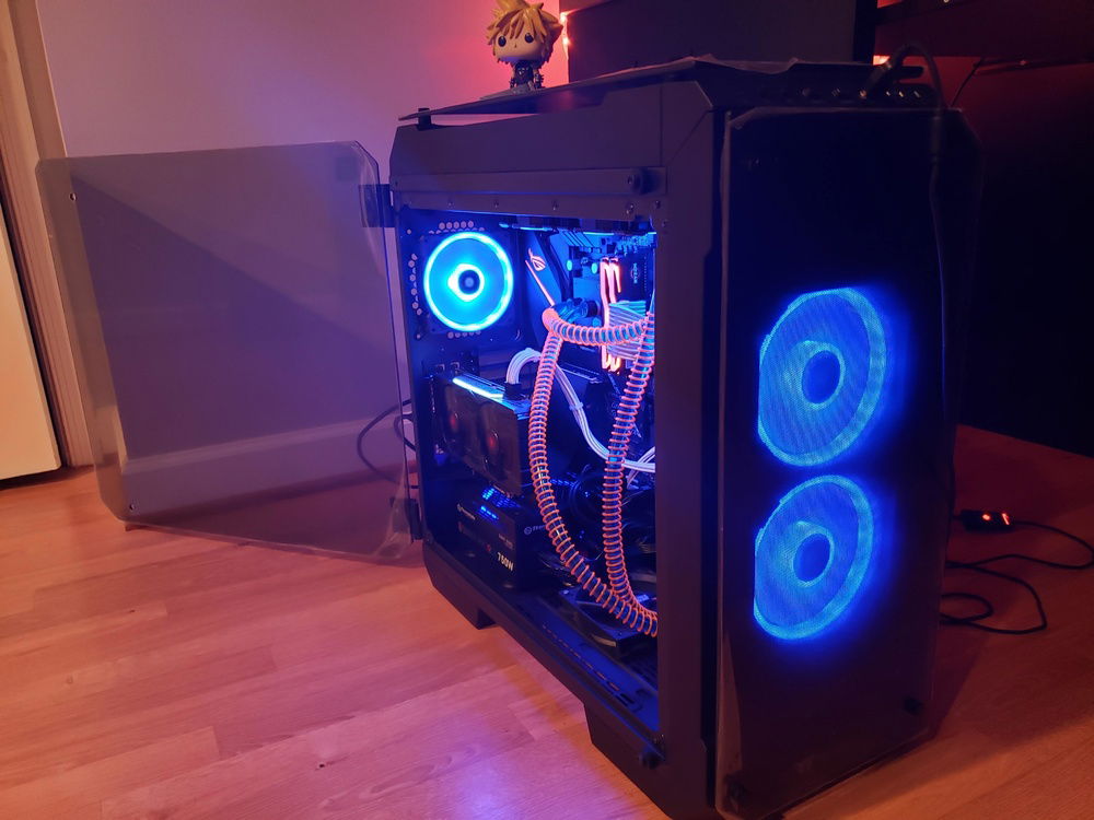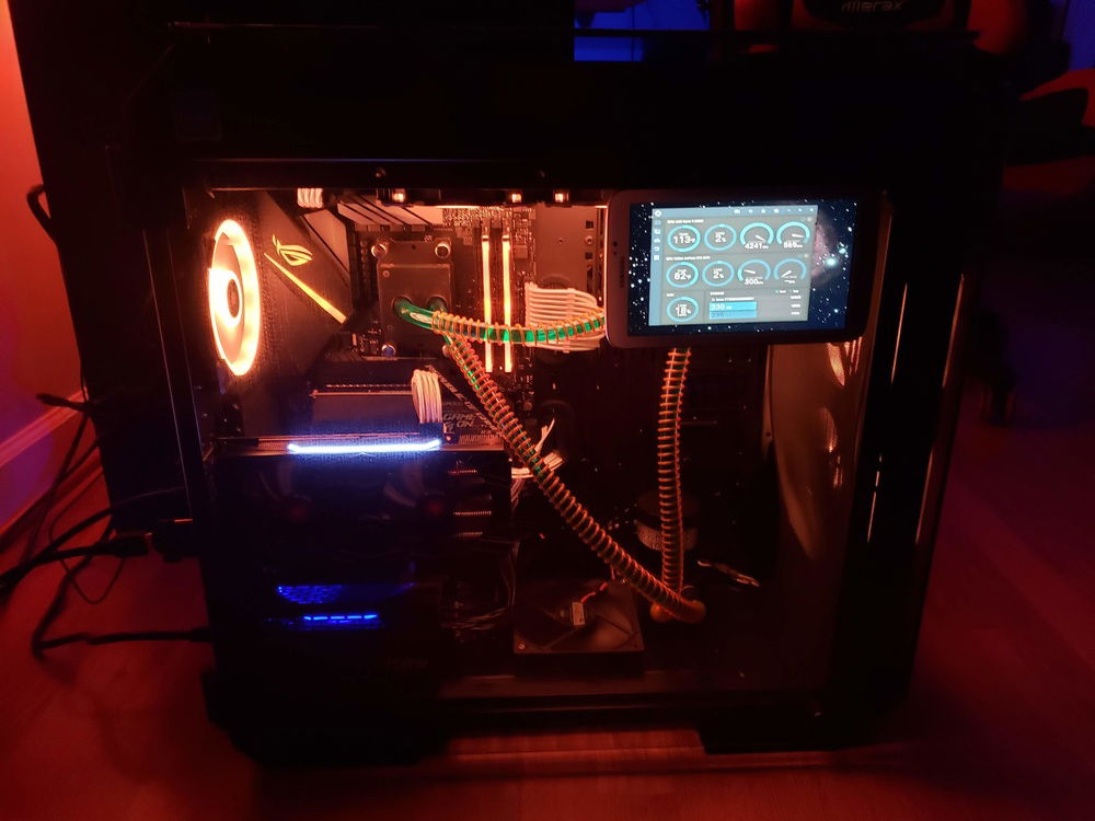 First build, Yes! now that's out of the way where to start. I didn't run into too many issues other than me freakin out at parts since I have never build a system before. It took me longer than most once I got all my parts because I would work on it after I got off from work throughout the week. So the main colors I stay with is orange and blue(hence the name O'blue). The coolant is actually blue but I notice, as you can see in some of the pictures, it comes off as green depending on the color of the Corsair LL fans. I had 6 extra fans that I ended up with but originally didn't have any plans to use but I used 3 of them, all non-RGB besides the Thermaltake case fans that came with the View 71. The 240 radiator at the top is in push/pull configuration with the Varder fans at the top. Threw an extra coolermaster fan at the bottom pulling air in to help with the GPU being vertically mount and I plan on possibly using one of the Thermaltake blue LED fans that came with the View 71 and putting it to the right-back of the motherboard. I wanted to water cool the GPU as well but couldn't find an aluminum water block for the PNY RTX 2070 card, unfortunately. Speaking of which I got really lucky to find the PNY 2070 brand new unopened for only $350 off of eBay. I know the orange anti-kink coils can look a little tacky to some but I haven't seen anyone use them so I wanted to use it to be a little different lol. I saw a few builds using a small screen as temperature monitors and thought that was one of the coolest things I have seen so I remembered I had an old Galaxy Tab 3 and so I set it up to show the CAM tool. I was originally going to keep it on top of the case since I could just look down to see it but decided to install it inside. Overclocked the 2600x currently up to 4.1 GHz from the base 3.60GHz. Only have 500GB but will get a 1TB NVMe soon (I really need more space I'm already at 300GB). Let me know what you think, complaints or praises, I'm just ecstatic I FINALLY got to build a system at 31 years old and I'm itching to build another....maybe I can convince the wife she wants one build :)