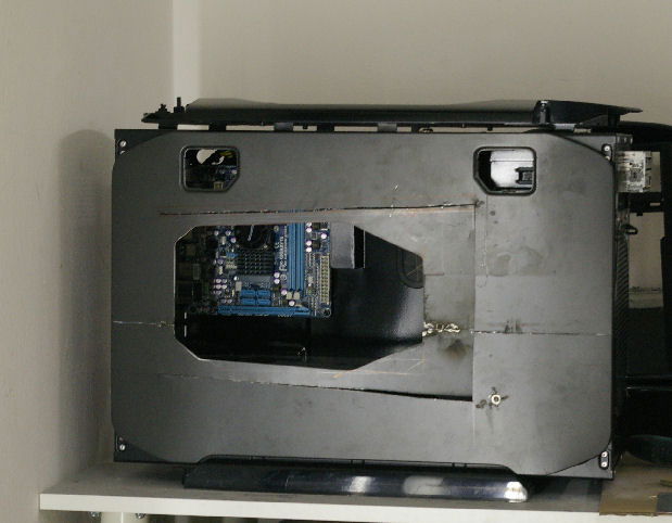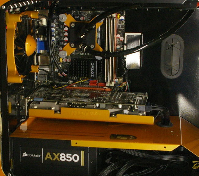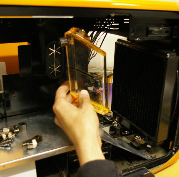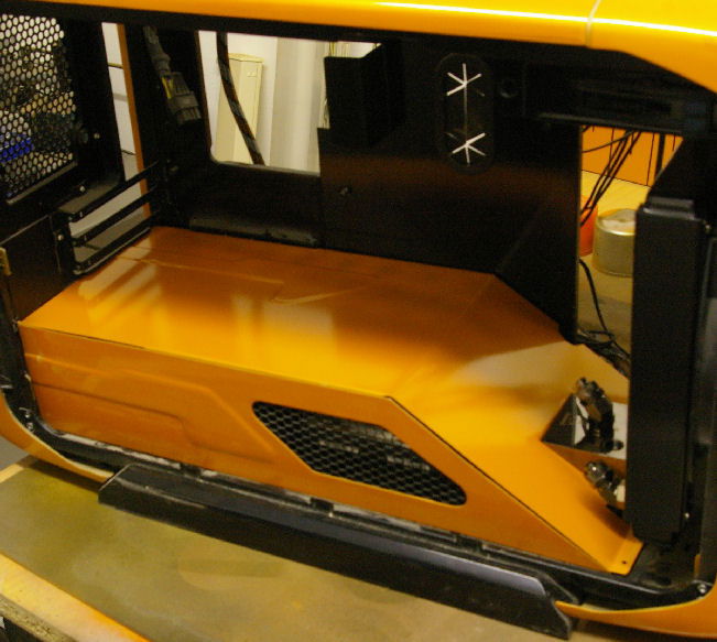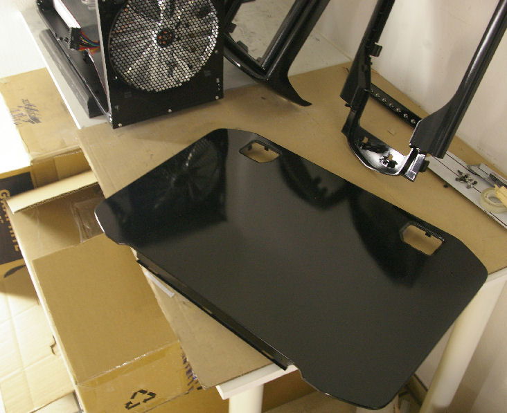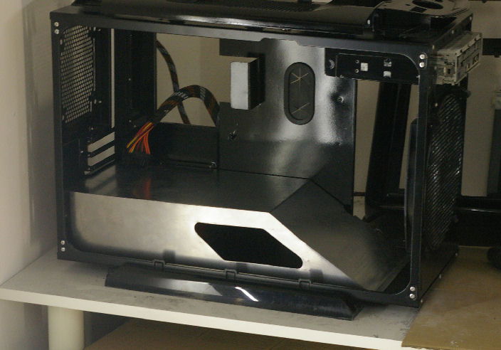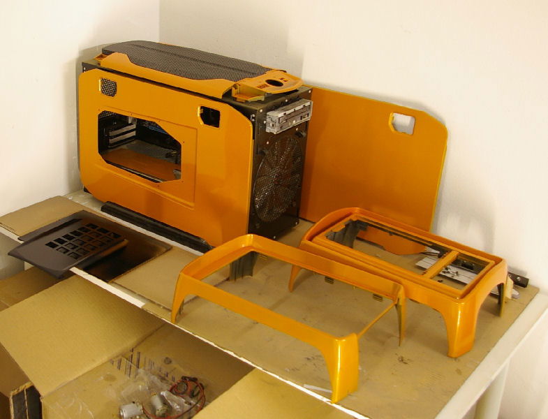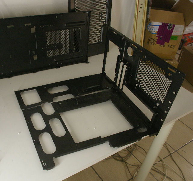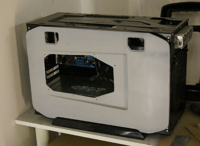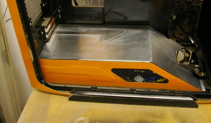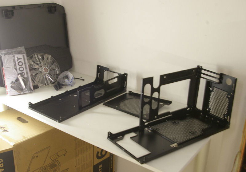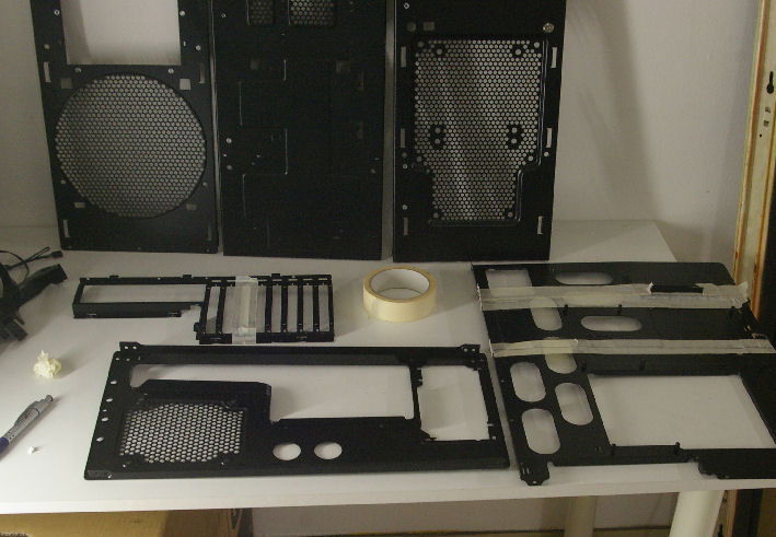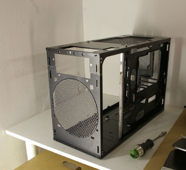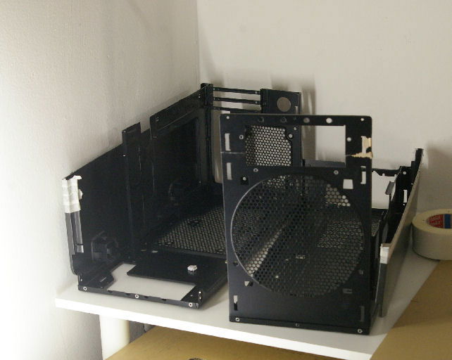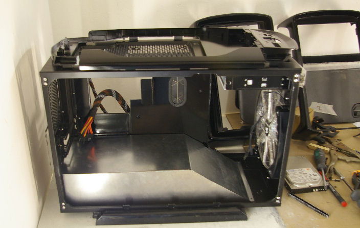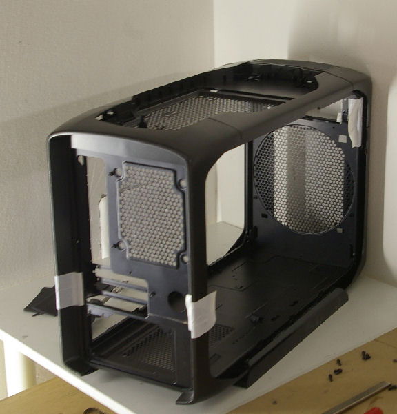 We started this build close to a big Exhibition. So everything was already packed and prepared and we wanted to mod something. We had a few Cases staying around, so we took a Corsair Graphite 600 and thought why shouldn´t we make a optimized Version of it ?? We thought it could loose some height so that we could still a full Size PSU, a custom Watercooling loop, a Mini ITX System and a full Size Graphic Card.....