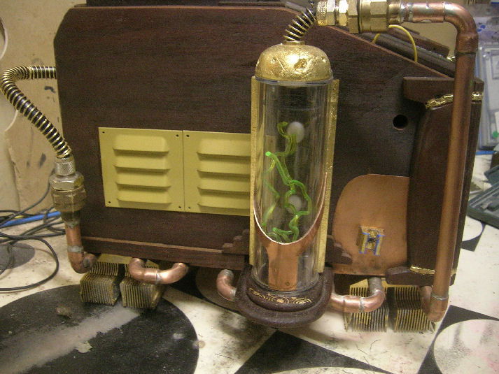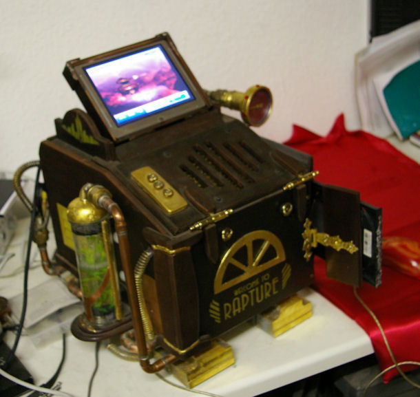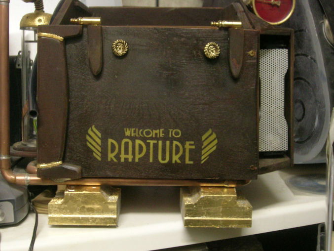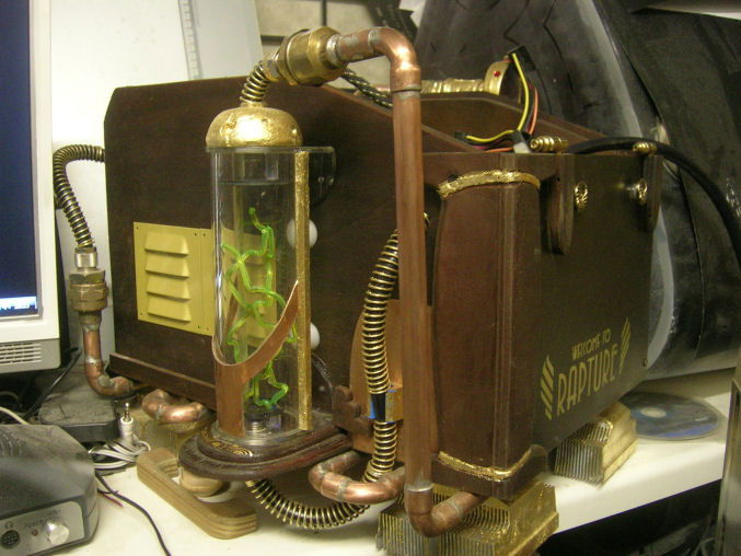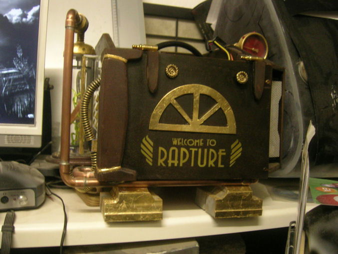 This build is from 2008. We really enjoyed to play the Bioshock Games, so we wanted to build a Custom Case based on the Game. It´s all handmade including the custom reservoir & the custom radiator. The Golden parts were covered with 24k Gold leaf