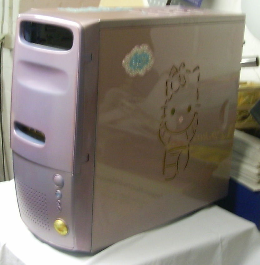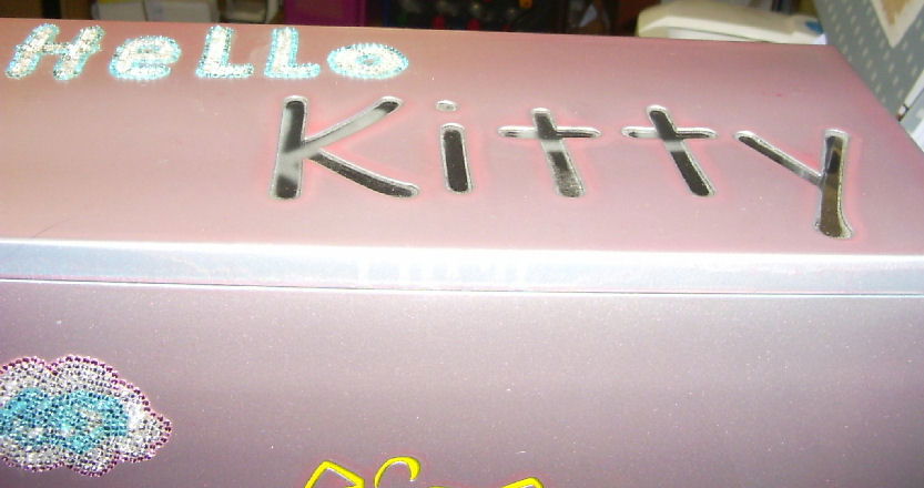 This build was made between 2003-2004. Originally it was build for the wife of my brother. She loved the Kitty and wanted a Hello Kitty themed Case for her own. So we built one. It has a special mixed color changing laquer on it, which changes from light blue to a nice pink. On the outside we added approx. 5000 Swarovski Crystals in several pictures...