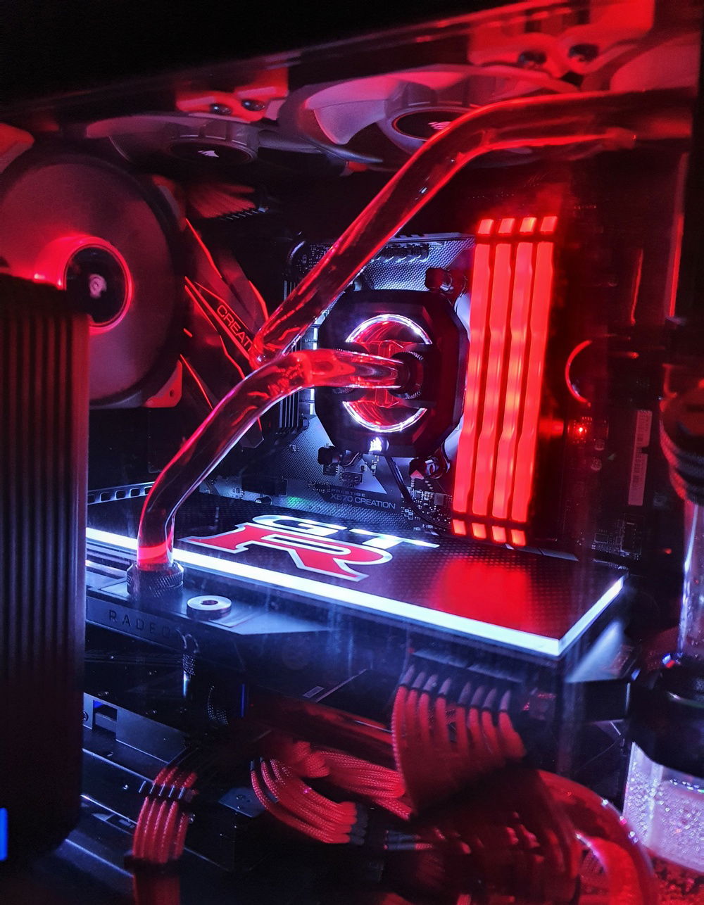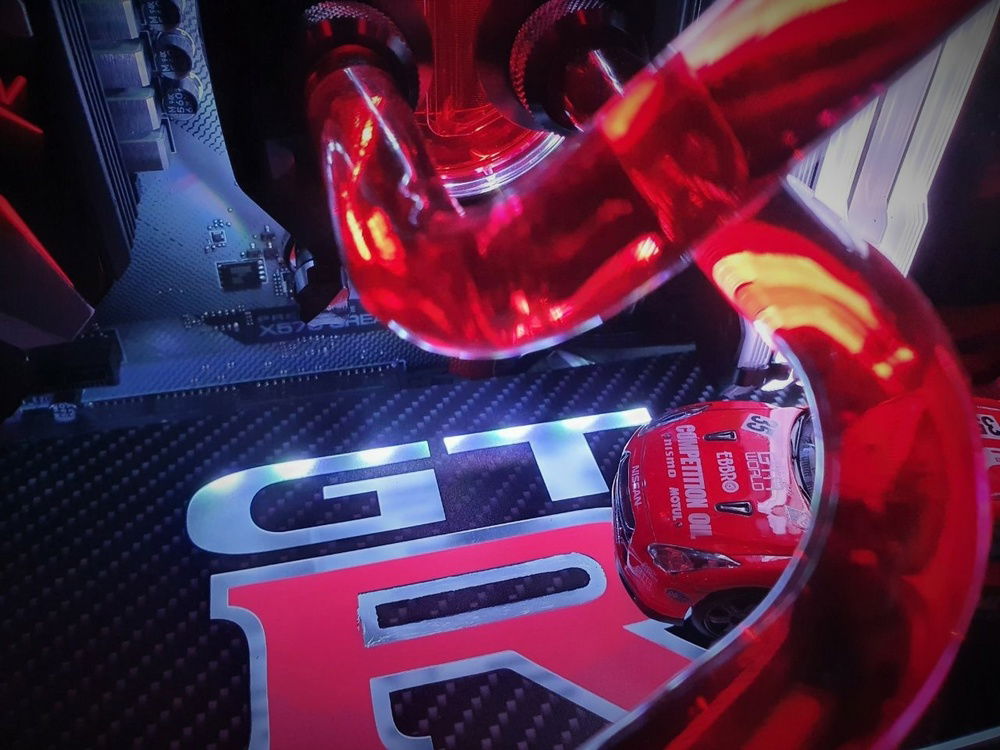 Used two Phanteks Halos D-RGB 140mm fan rings to enhance the ML140 PRO RED fans at the front to replicate the taillights of a ππ§-π.