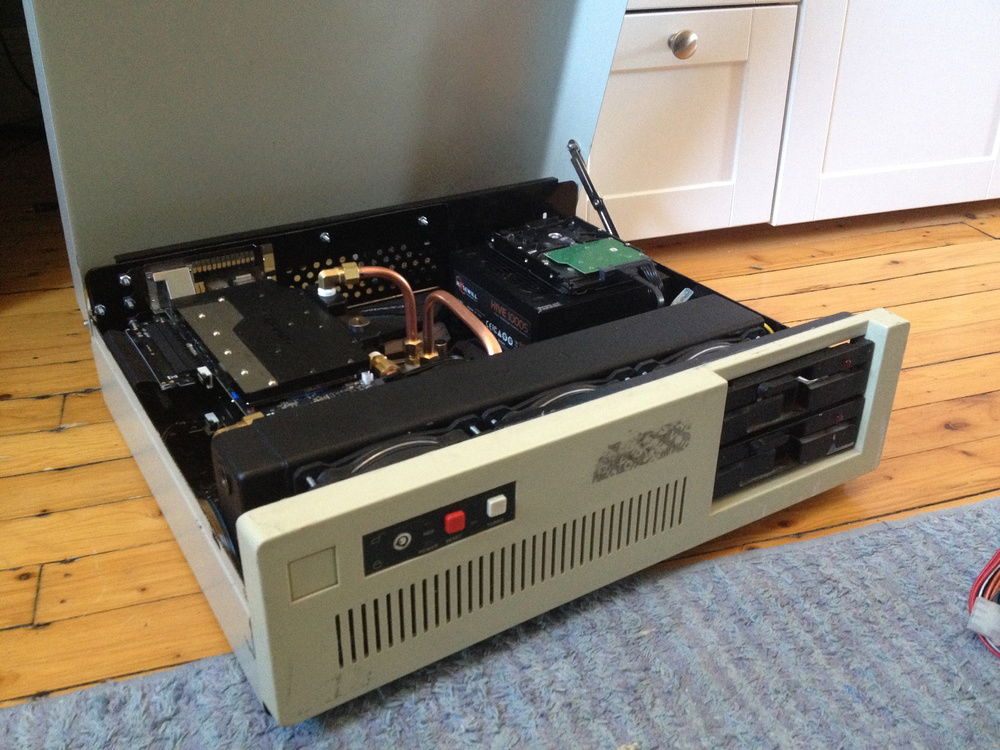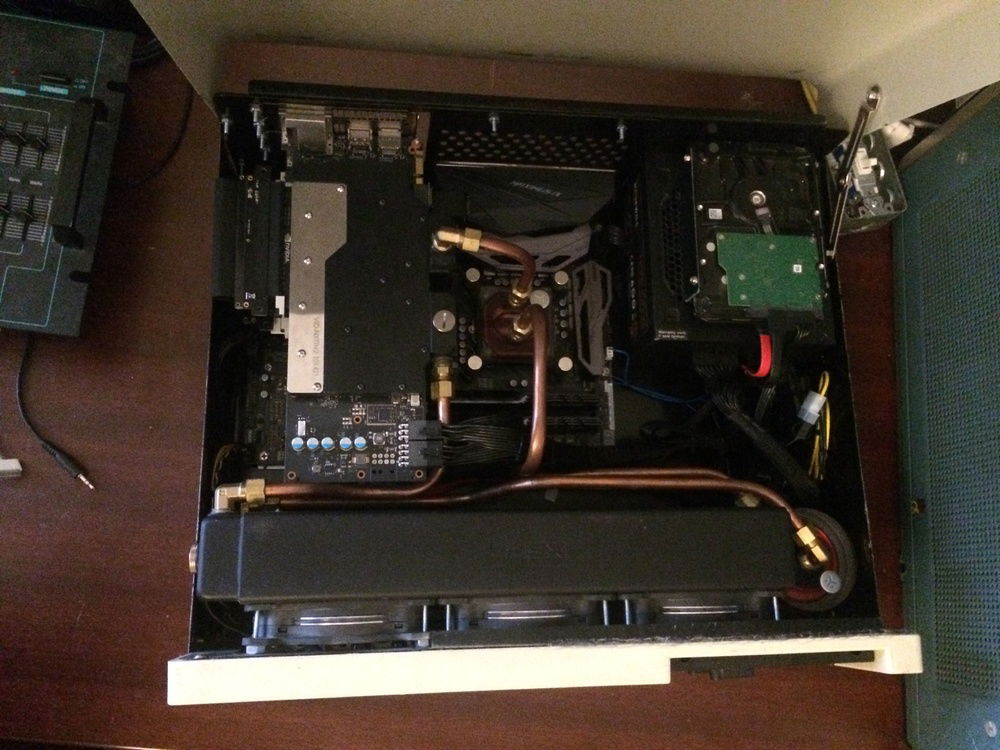 Custom built sleeper made into an old 87 IBM PC clone case just for fun. Almost all the parts are used but have had no issues with them. The reason I have two Titans is because my previous build died and it was during the massive mining hype, so this was the best I could get for the price. It has been my daily driver ever since.