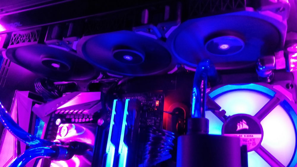 Zoomed in a bit. Corsair fan stickers are always put on wobbly, so their intakes must never be visible, always with their backs to us in shame.