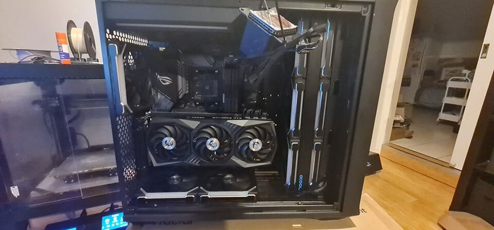 Been in lockdown for the better part of a year, working from home and watching the apocalypse that was video cards and cpu shortages. Diddnt think i was going to get the opportunity to do an upgrade this generation, mainly due to cost and availability. Bought a new case and some lian li fans to breathe new life into my existing build (8086k/2080ti) which isnt a slouch by any means, and still does amazing with most things i do. Ive been in the process of building a flight sim cockpit (honeycomb yoke and throttle, and i 3d printed and built from scratch a couple of g1000 screens) and fs2020 isnt running quite to my liking, as well as driving 3 1440p screens. Do i need to upgrade? no probably not. Its been such a crap year, been working my ass off and dealing with everything thats been thrown at me so decided to upgrade. very few compromises, and complete overkill for my usage but here comes the full 2021 upgrade. Case, cpu cooler and fans have arrived, along with a vertical gpu mount. GPU shipped today, still waiting on CPU, PSU and Ram to ship in the next day or two. Undecided if i want to reuse my samsung evo m.2, or go with a gen 4 drive yet. Super exited to build this