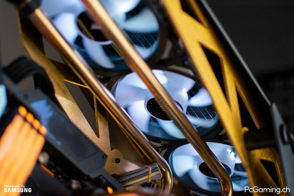 But an exceptional case is not without exceptional components. You have here a Threadripper 3990x, an RTX 3090, 128GB RAM and 2TB SSD Samsung 980 Pro. Everything is of course cooled with custom watercooling. Handmade cables complete the PC.
