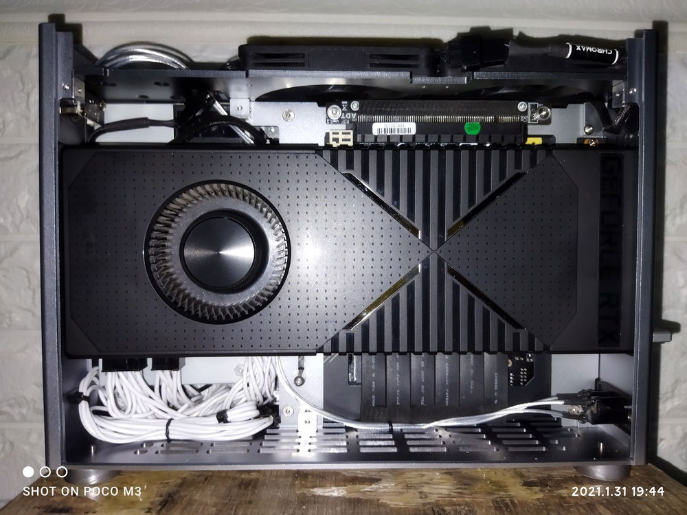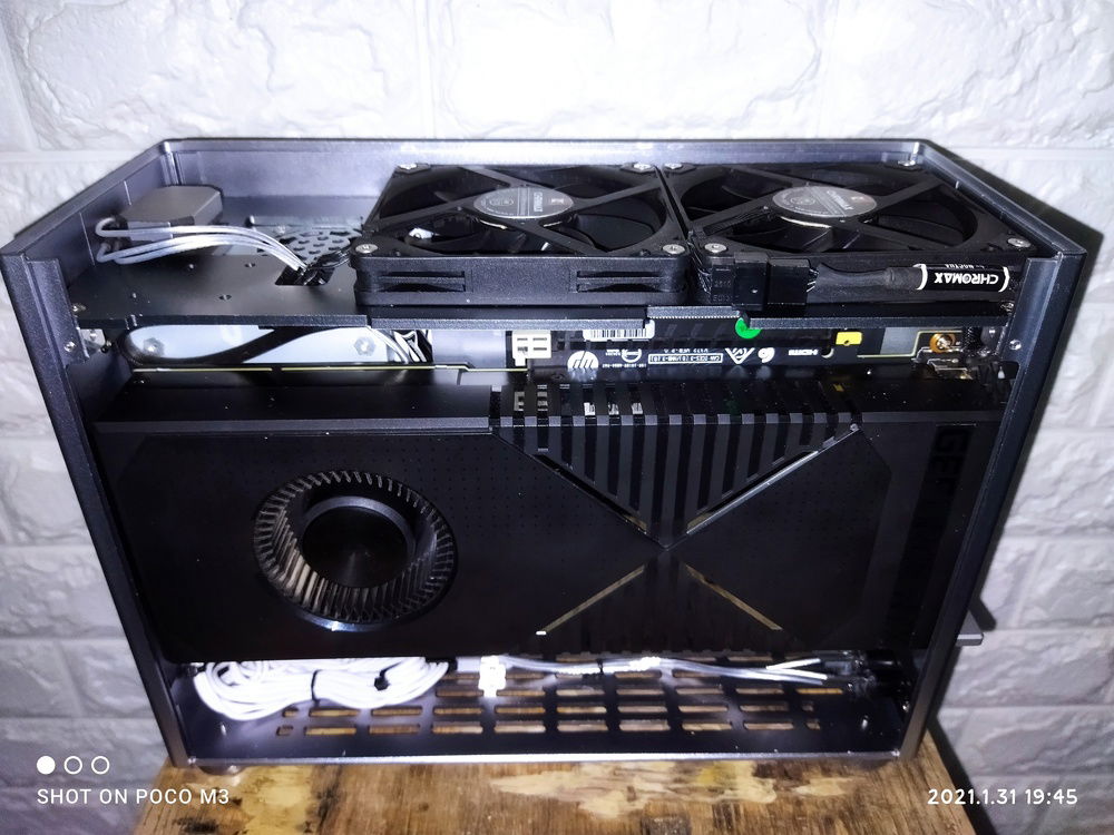 The wifi antenna uses a mini antenna and USB-C from the GPU RTX 2080 is used for Display output