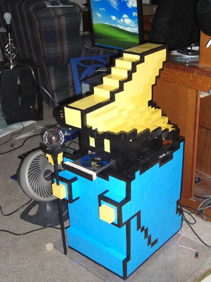 This was my first pc build and I thought it would be neat to have all my builds on here and see my progression as a modder. I'm sure the mods are confused by me requesting to have my 11 year components to be added to the library! This was about 2k wooden cubes and 2 months of work. I won a few pc mod competitions with this and got in CPU Magazine and Nintendo Power!