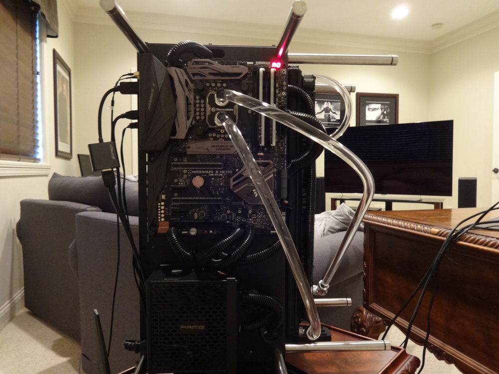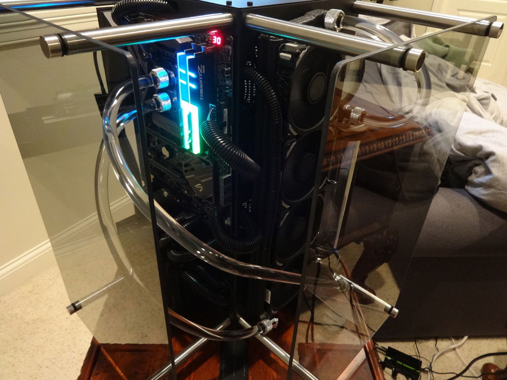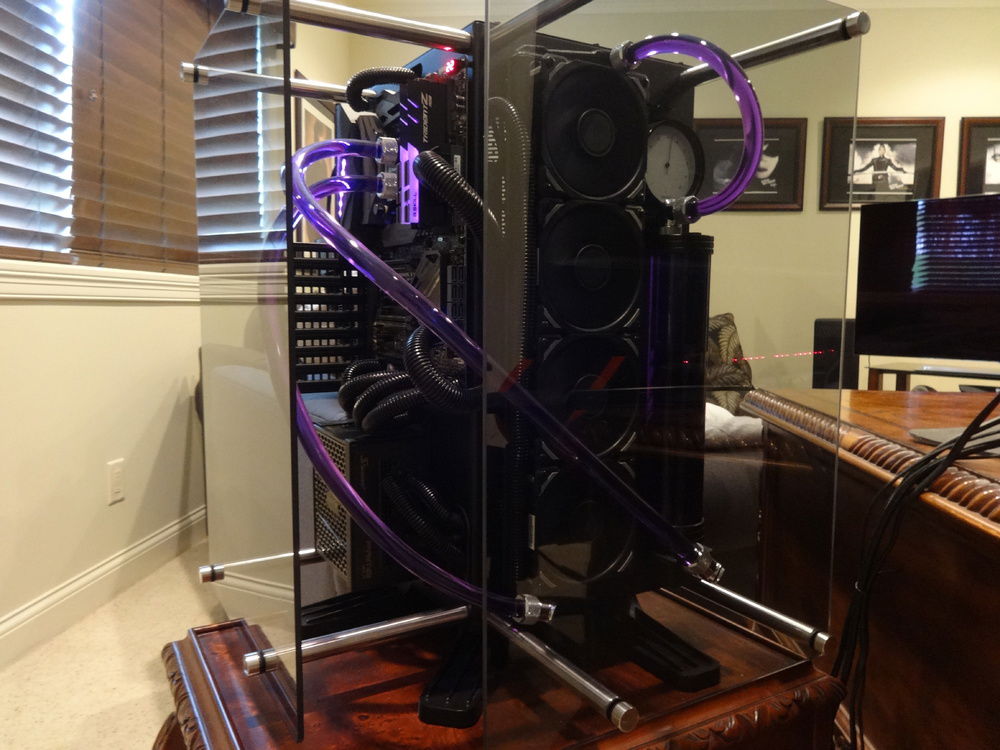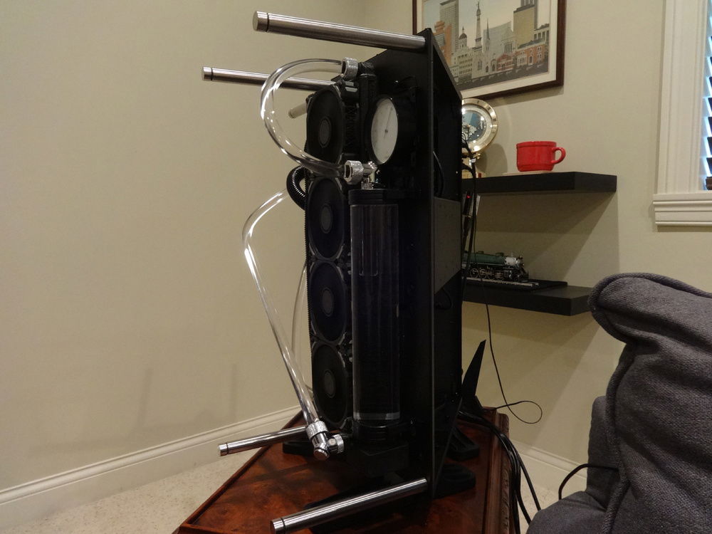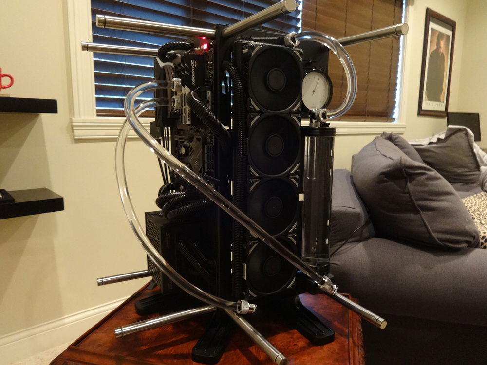 After a few flexible tubing builds I wanted to try my hand at hard tubing. As I didn't want the tubing hidden within a case I decided to go with the Thermaltake P90. As it was being assembled I got a engine "vibe" and went with it...