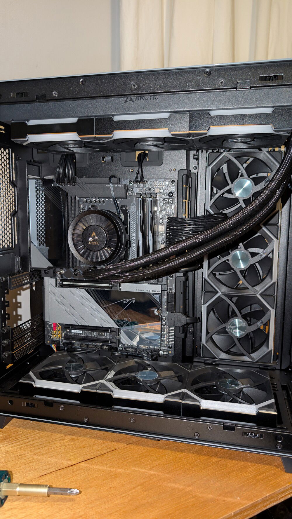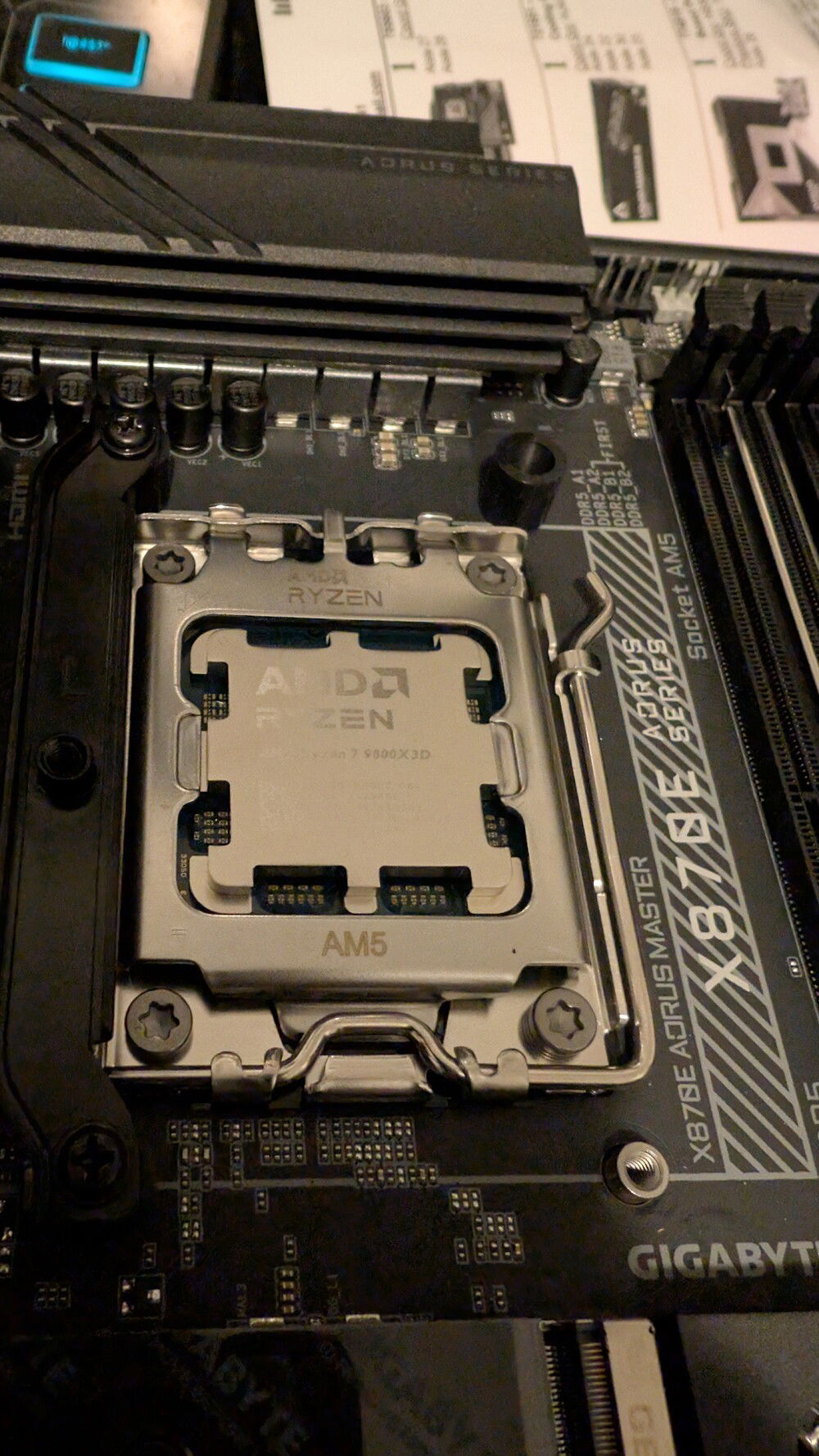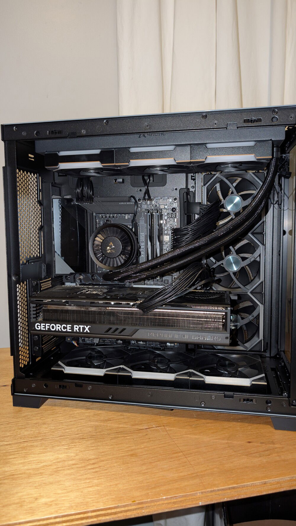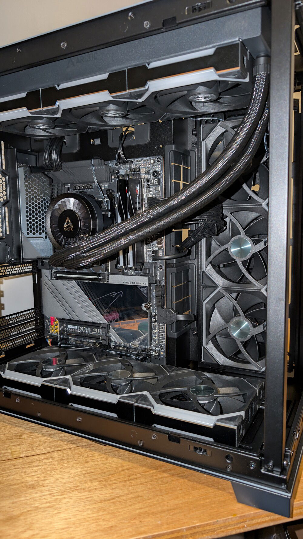 9800x3d 6400mhz with a asus 4090. On a x870e aorus master motherboard. Also using the brand new lian li wireless fans.