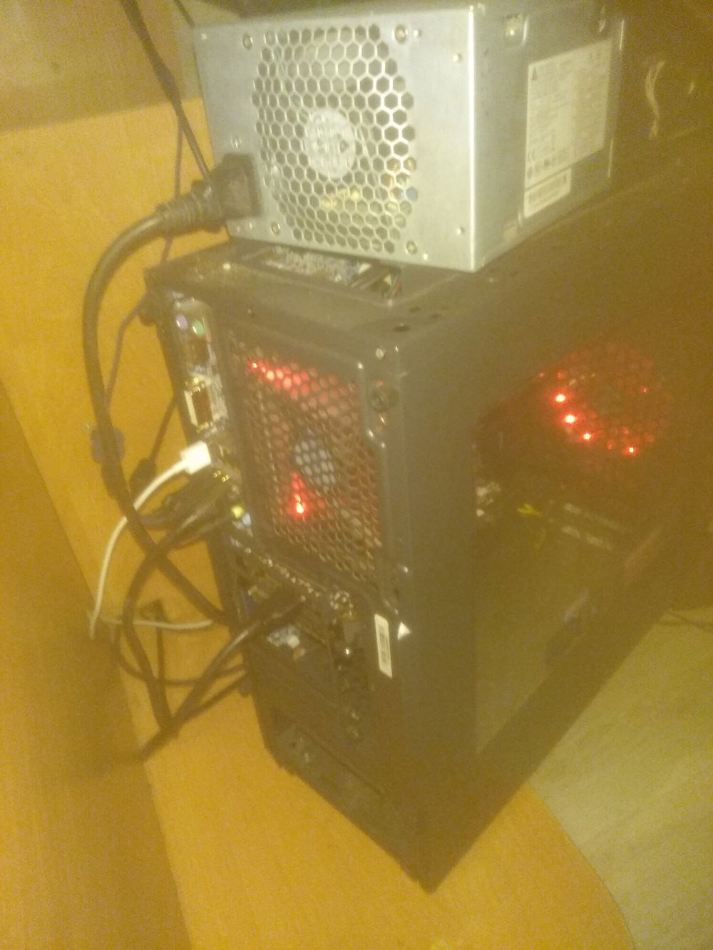 OLD DISC.!!!!!!!!!!!!!!!!!!!!!!!!!!!!!!!!!!!!!!!!!!!!!!!!!!!!!!!!!!!!!!!!!!!!!!!!!!!!!!!!!!!!!!!!!!!!!!!!!!!!!!!!!!!!!!!!!!!!!!!!!!!!!!!!!!!!!!!!!!!!!!!!!!!!!!!!!!!!!!!!!!!!!!!!!!!!!!!!!!!!!!!!!!!!!!!!!!!!!!!!!!!!!!!!! This pc is made from parts that I got for free, from work. These parts, they ware going to throw out (not including the Case, Cpu, SSD, Ram and Gpu as I had those bought for a project i never finished). The motherboard is an Atx Non standart HP OEM board from the Z200 series workstation PC, It had no cooler that would fit it, so I had to ziptie it to the motherboard, works fine btw. (the cooler had the intel feetsies broken off anyways soo didnt lose a perfectly fine cooler) The motherboard requires an OEM PSU, thankfully it came with the 320 W instead of 160W, so i was capable of powering the EVGA GTX960 4GB. As well ass the PSU being prepriotary, the FPC's ware too, so I was unable to use the case FPC, Instead of dangling around, it is fit in place using modeling clay (the non Wet type). It features a 120GB cheap SSD, as well as a Seagate Barracude 1TB 7200 RPM Hard Drive. 12 GB's of DDR3 1333mhz Ram and an X3470 4 core 8 thread CPU. The PSU is secured to the top of the case via 4 screws (not that secure but keeps it from falling off during small movements).