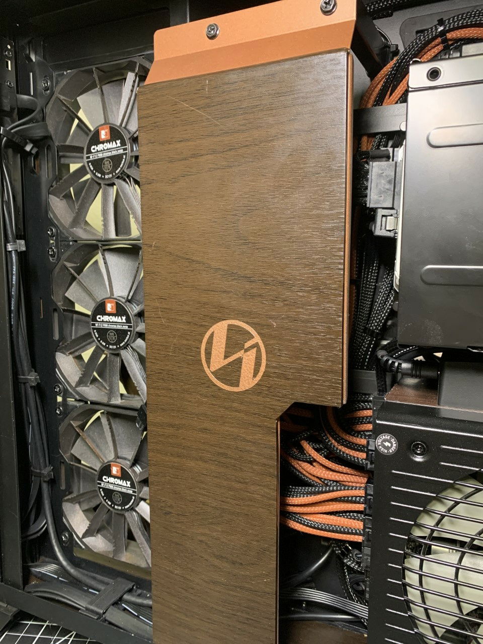 Added a "wood" panel, but had to keep the Lian Li logo. Most of the wood panels are just 3mm acrylic covered in a wood-grain contact paper.