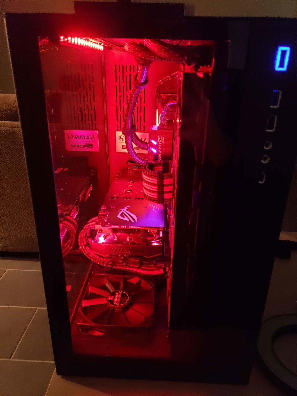 Everything in the case is black in a beautiful Black Lian Li Dynamic. Very clean build. The Active Black name come from everything being black and since I am using RGB in the Black Lian Li Dynamic case I felt Active was a good play on words. The S36 is also in a push pull configuration. 9 Noctua fans in total. The Case itself is great but one issue is the cover for the secondary psu position. The cover is not a solid plate and is not filtered so large particles of dust are sucked through. I covered the holes with a magnetic sheet from the inside as a temporary solution.