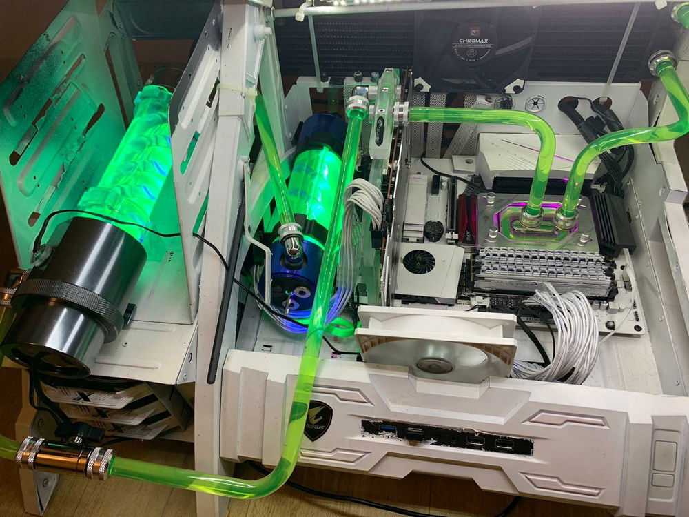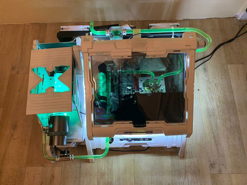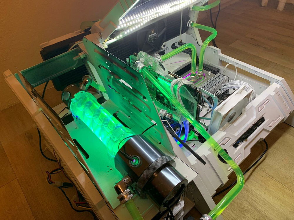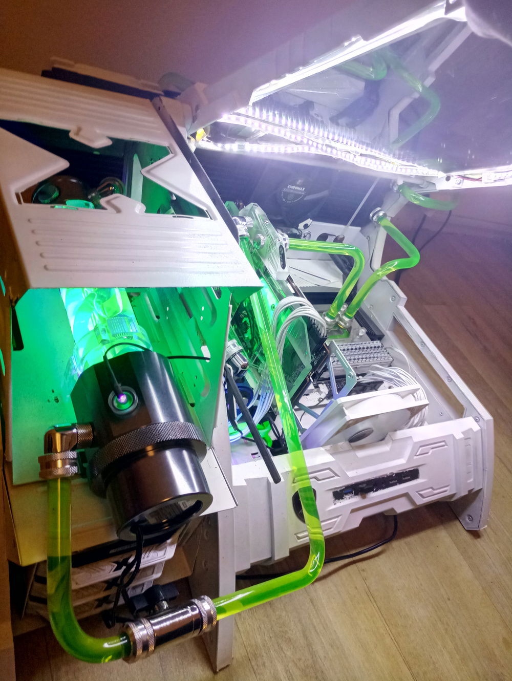I added Custom water cooling loop with 2x reservoirs all water cooling parts are from byksi eshop apart from the inside resevoir which is alphacool eisbaer .