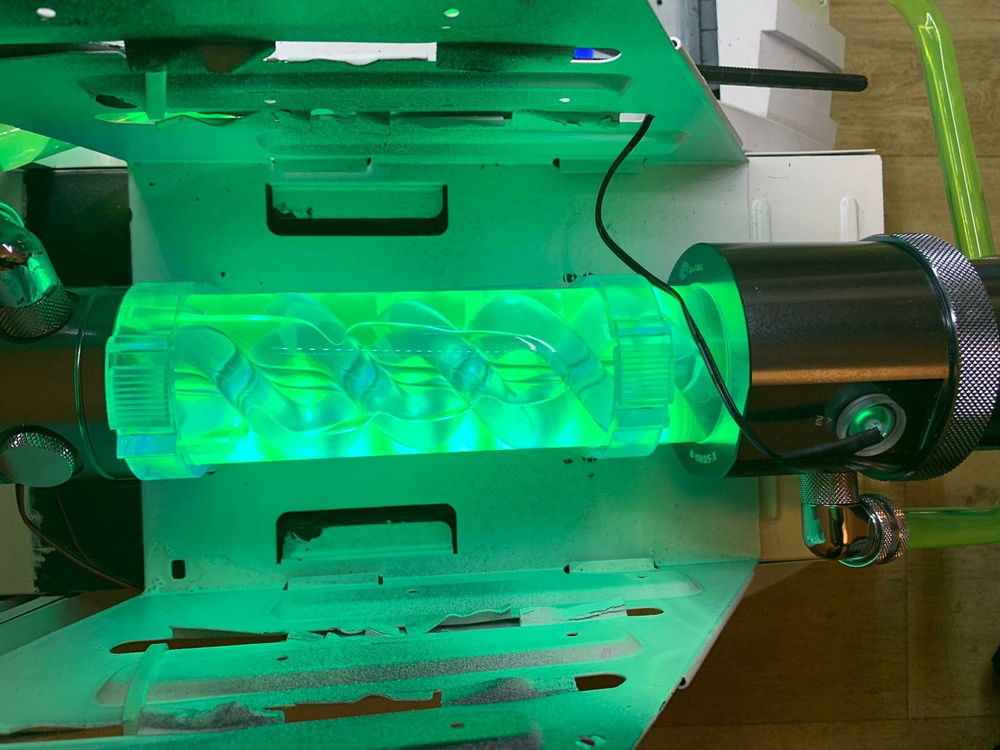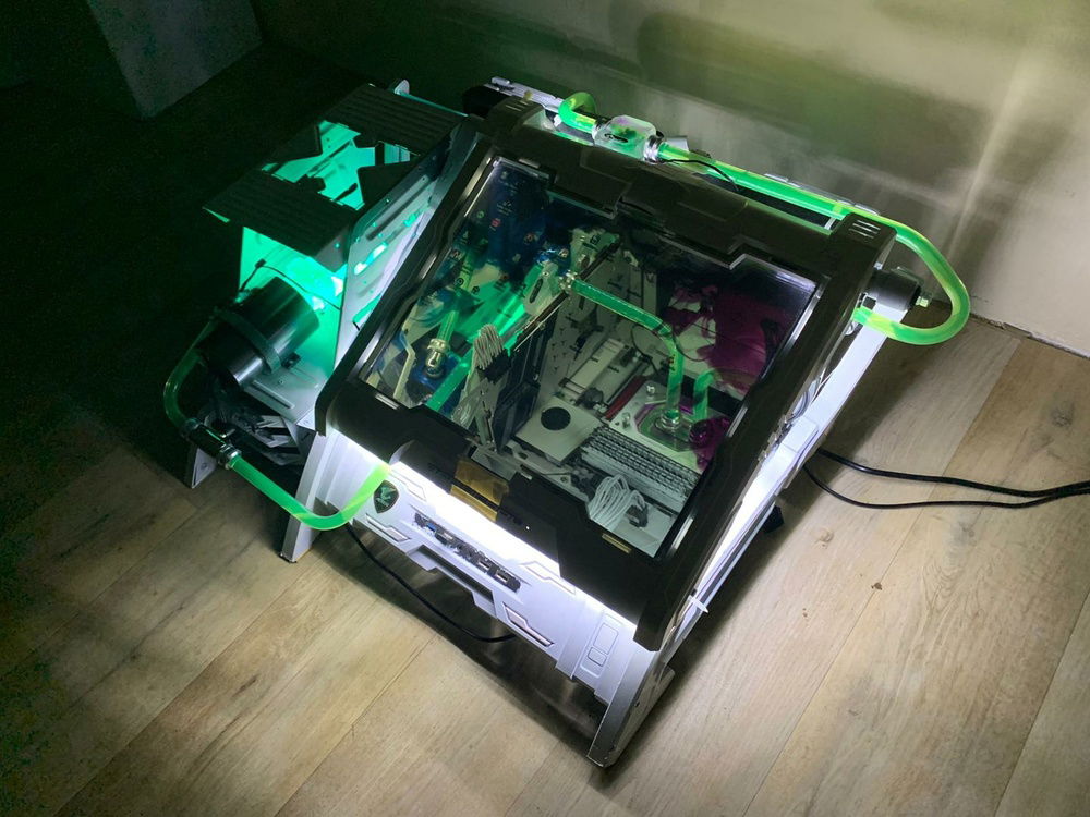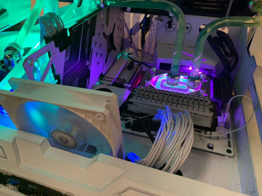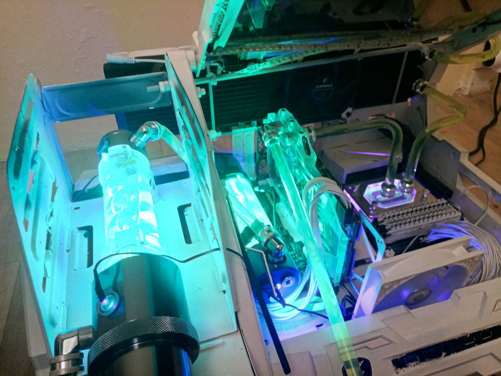 I added Custom water cooling loop with 2x reservoirs all water cooling parts are from byksi eshop apart from the inside resevoir which is alphacool eisbaer .