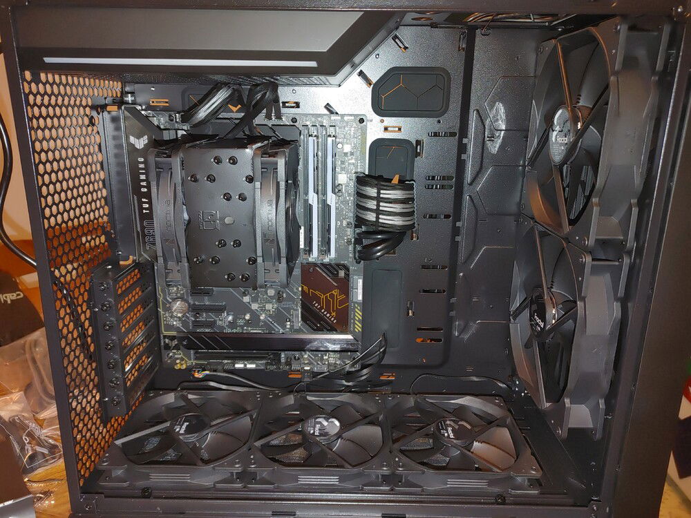 Alder Lake was able to tempt me into making a new PC. Sadly I wasn't able to get ddr5 because of scalpers and such. I was able to get a 3080 after over a year in the EVGA queue. Did some light overclocking to push past 18k on Time Spy so the PC flies. I was lazy as far as getting the PC to look nice. Unfortunately the Cable Mods pack only came with 2 pci-e 8 pin cables so I had to use one of the standard cables from the PSU so it doesn't look as pretty as it could have. I put it together in the middle of the night while me wee lad was asleep so I was under a time crunch. The old PC gets to be his to play Minecraft and Slay the Spire on so he's super excited now as he doesn't have to wait for his parents to get off the PC.