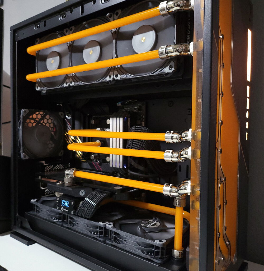 It was a challenge, but I got everything I needed into the 303. With the two 360 radiators, my temps are pretty decent. My 5900X sits around the 65-70C range, game depending. My 6900 XT doesn't normally go above 55C with "Rage Mode" enabled. My fans are set at 80% (1625RPM) and I have my pump at 48% to make it pretty much inaudible. I'm quite pleased with this coolant so far, but we'll see if it holds up with time.