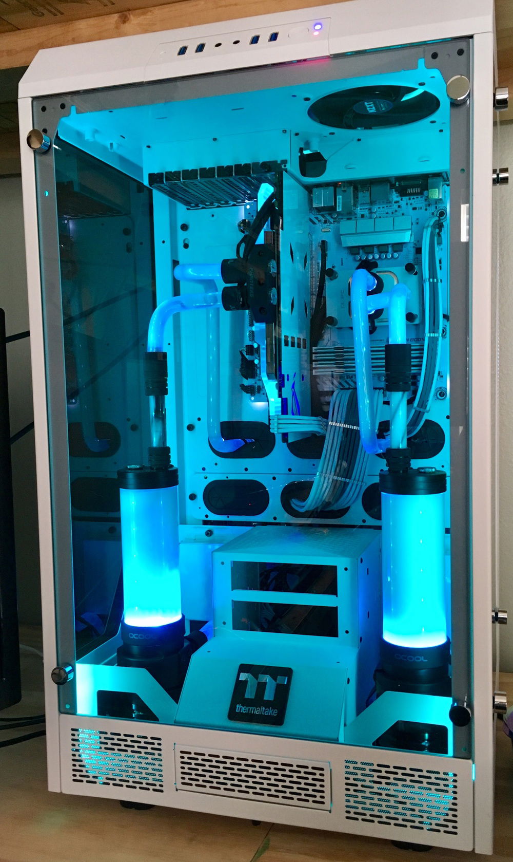 I only got one picture before disassembly. This case was so big and hard to manage that I only used the system for about eight months before selling the case and cannibalizing the rest for other machines. I couldn't get it close-enough to my monitors, they kept flickering over the long DisplyPort cables.