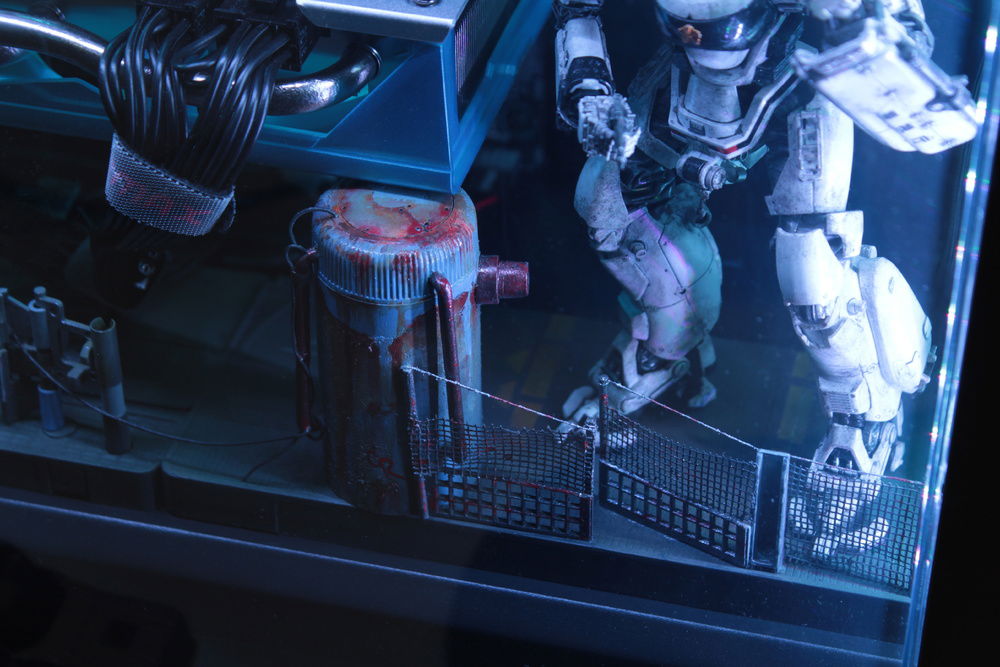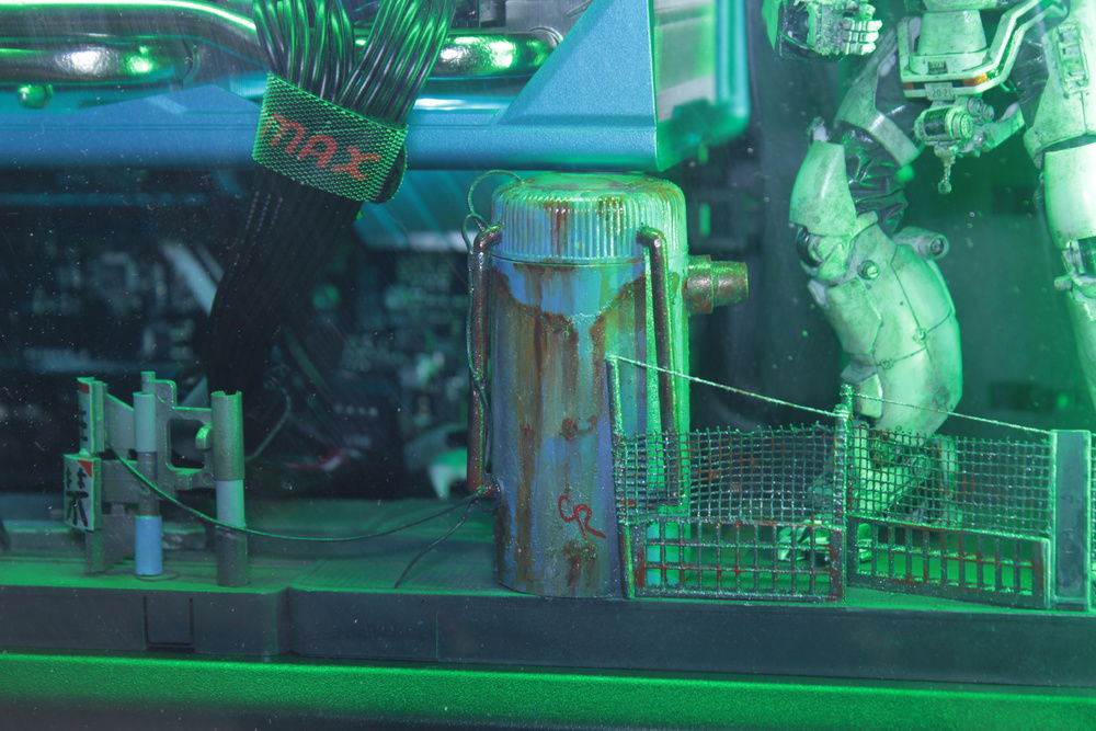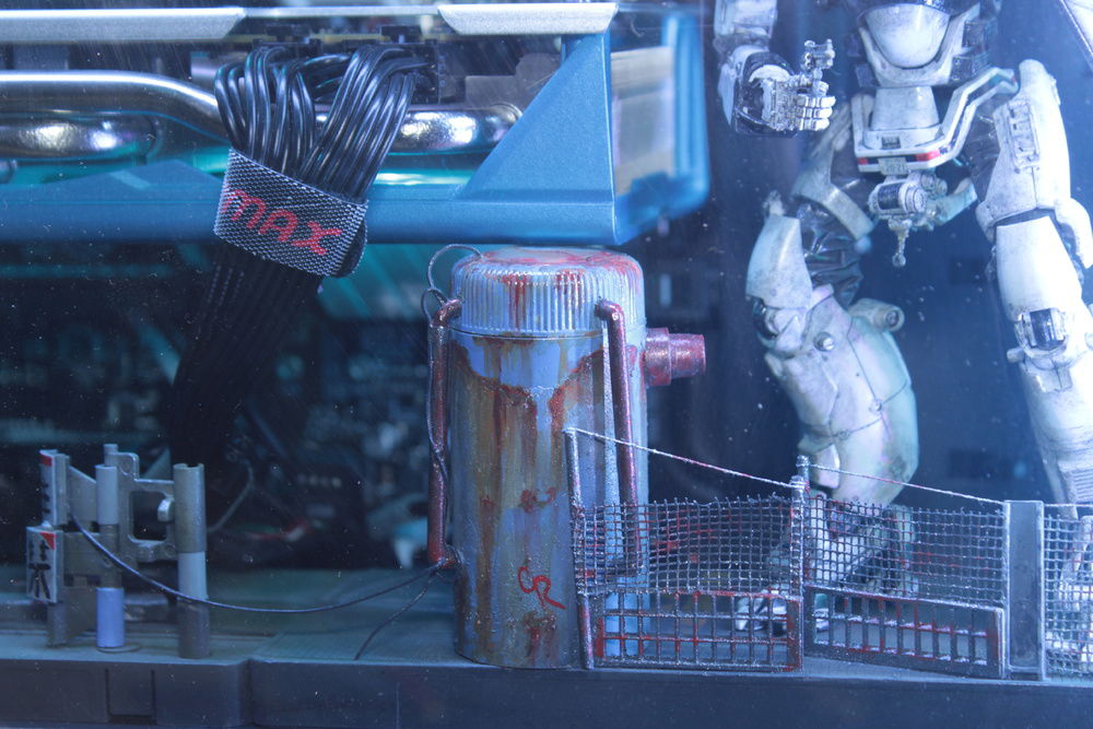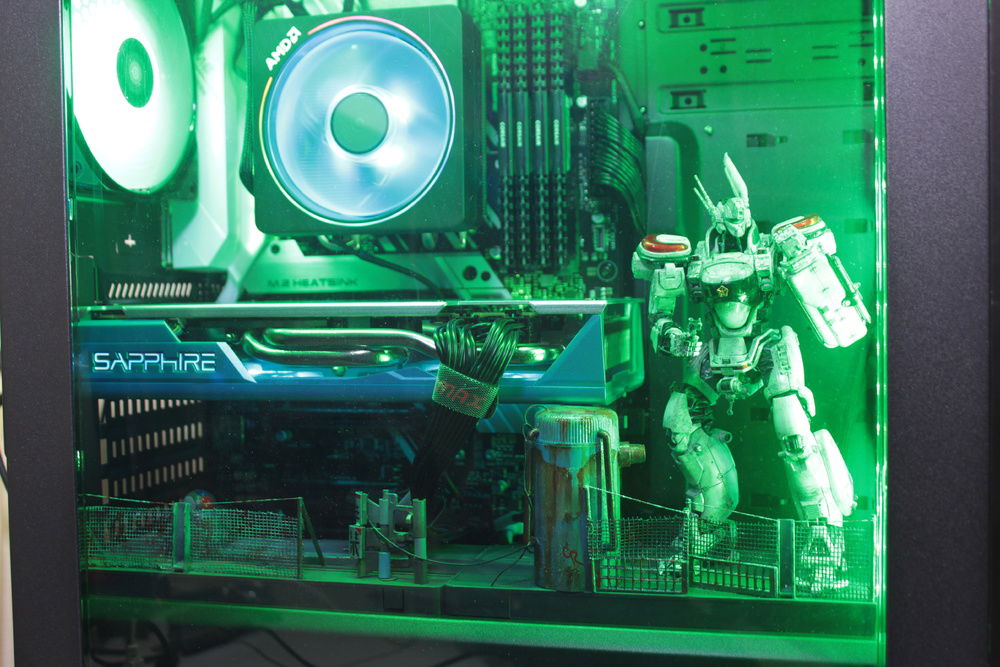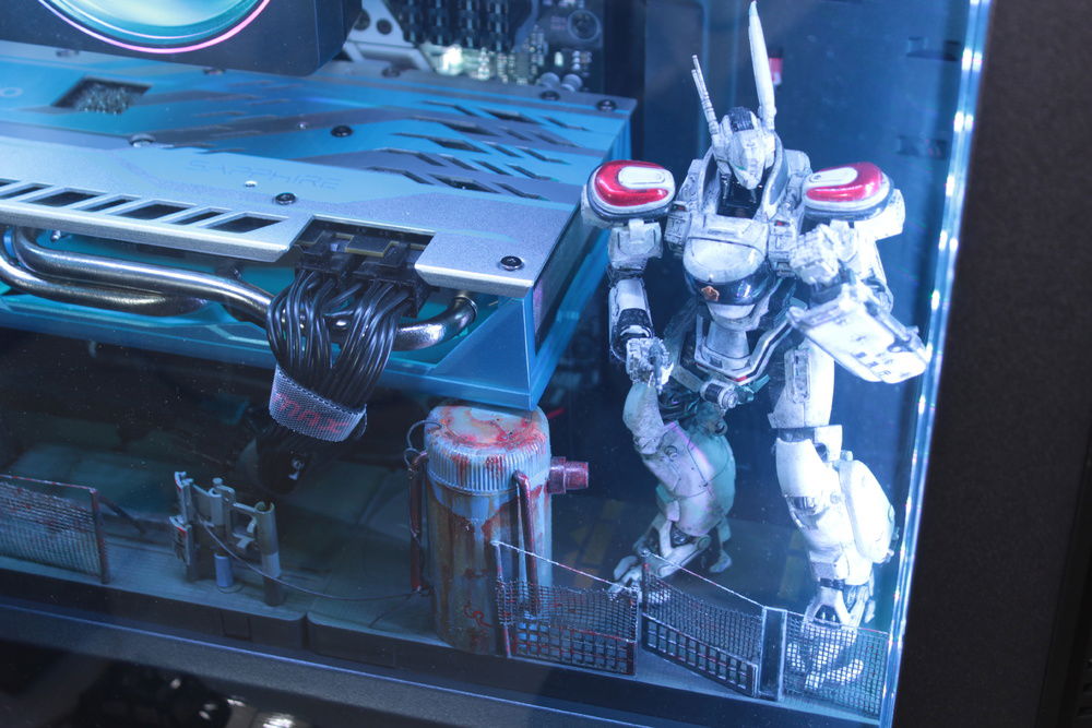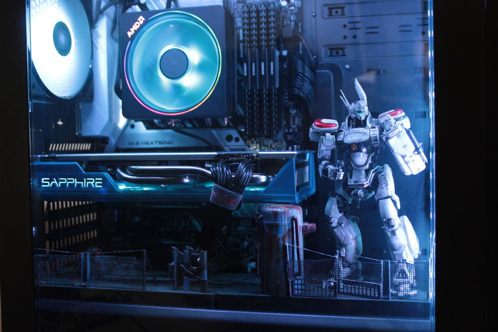 I needed a gpu riser, so I goes for a "mini patlabor diorama" inside the case.