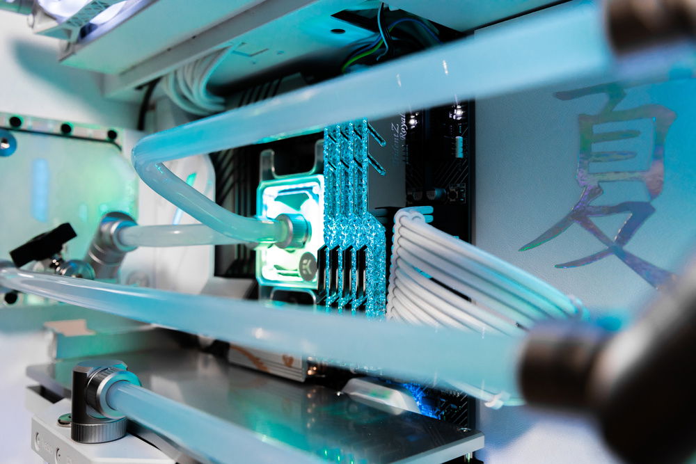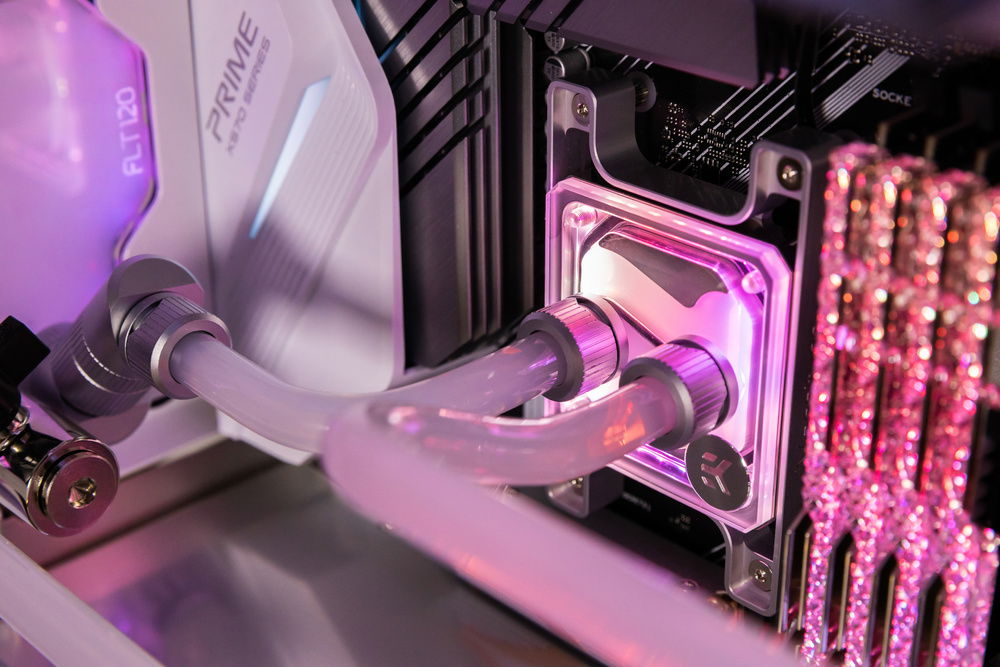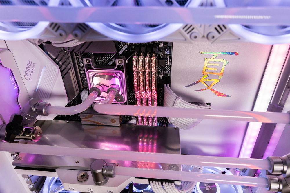 New gen AMD gear built into a custom painted InWin 303EK case! EKWB water cooling parts (and a Thermaltake flow sensor). The two color themes I went for are "Cherry Blossoms" and "Northern Lights". Not all parts in the parts list are accurate, I did the best I could (e.g. all EKWB fittings except the ball valve are Satin)