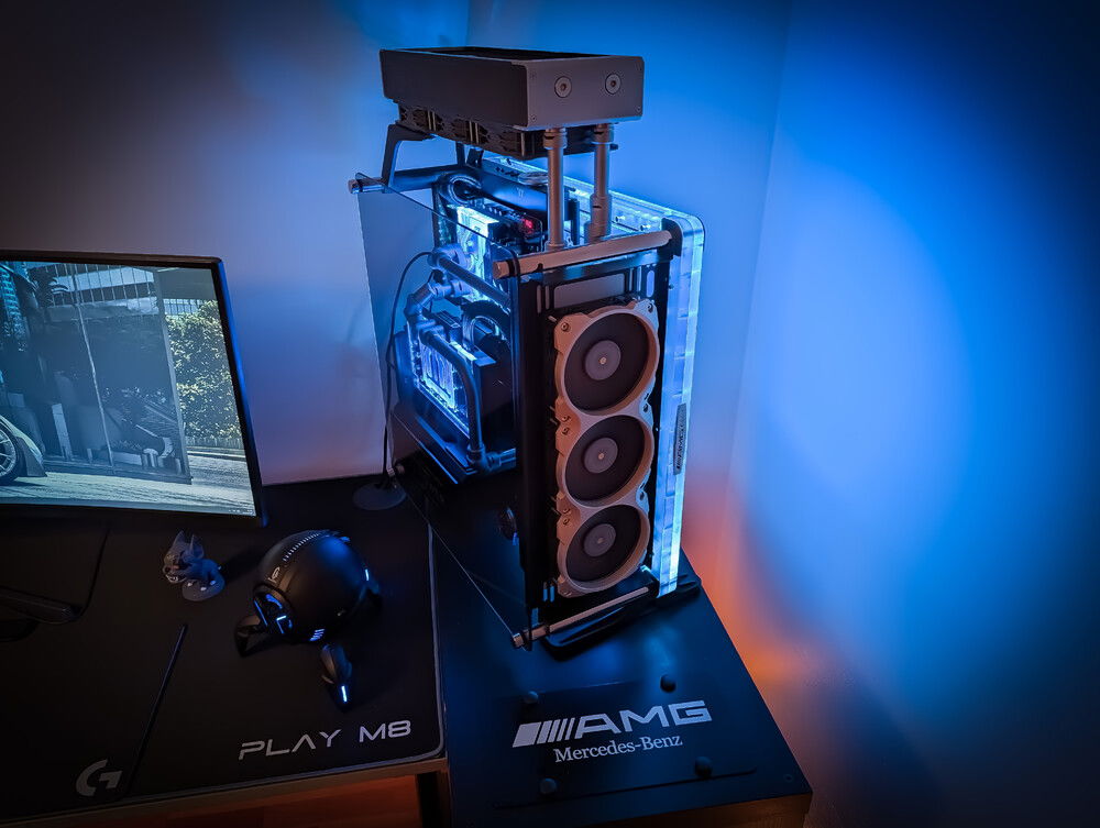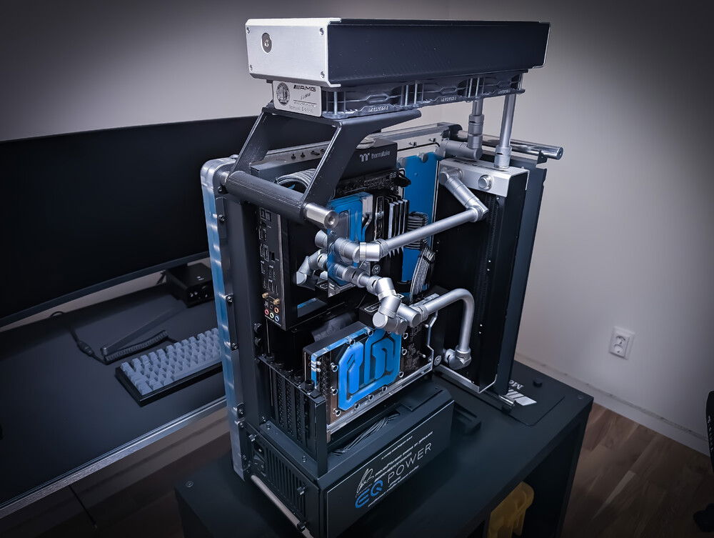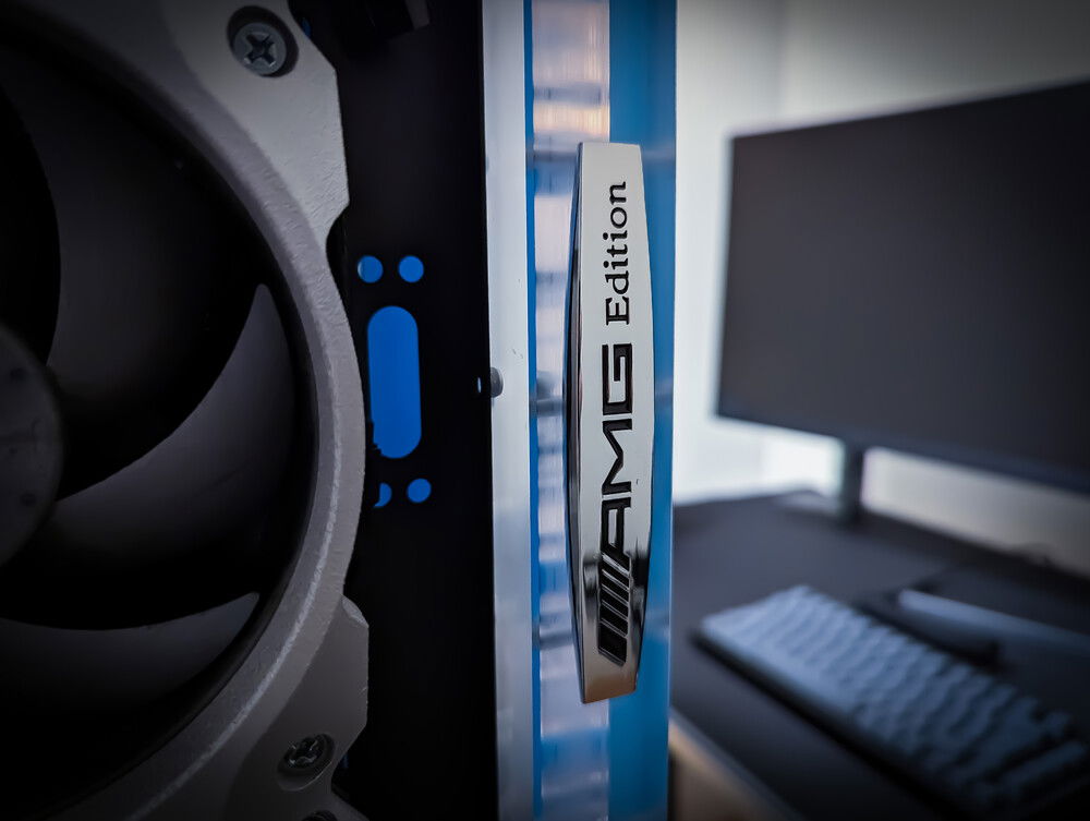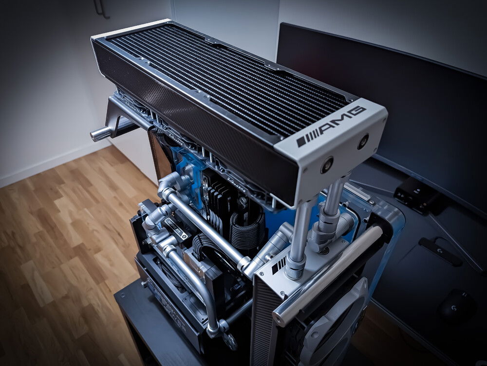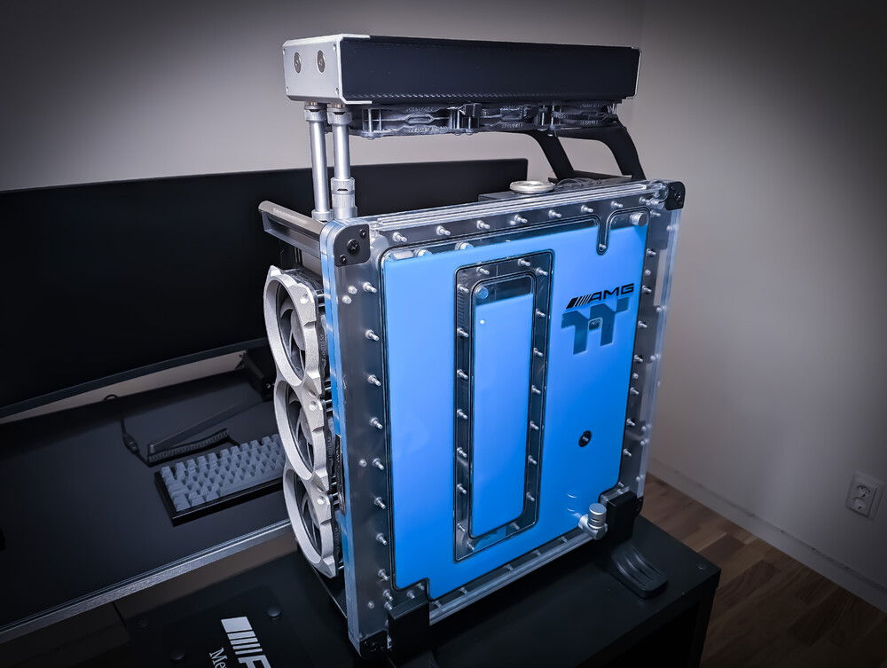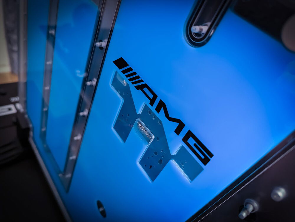 This build is inspired by project one, the car created by AMG. The build is also a tribute to my son who loves cars. The goal of the build was to make it look like an engine and thus represent the car itself. Everything from the colors, design etc. are taken directly from the car in its entirety. AMG was of course on board and sponsored with various original parts.