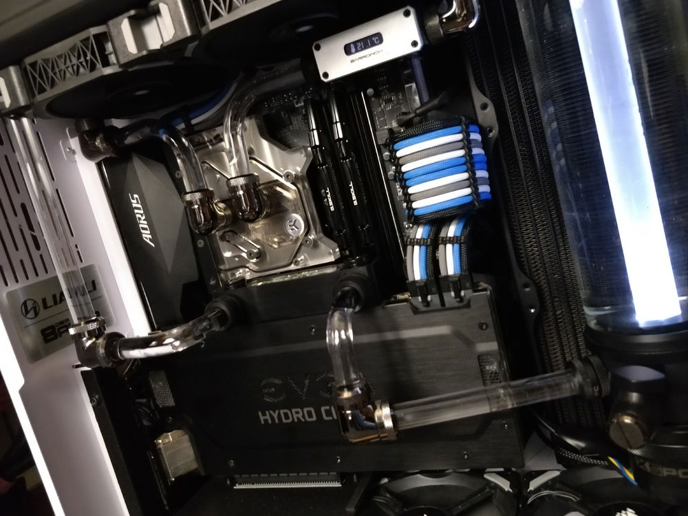 Water cooling parts: XSPC Photon Special Edition XSPC 10mm 14mm Matte Black fittings, black sparkle elbows and 90 degrees Barrow Extension, 90 degree, Rotary 45 degree, Digital Display Temperature Display Bitfenix Q-Rotary Swivel fitting Distilled water + Liquid Utopia Radiator: BlackLabs 240GTX + XSPC EX360